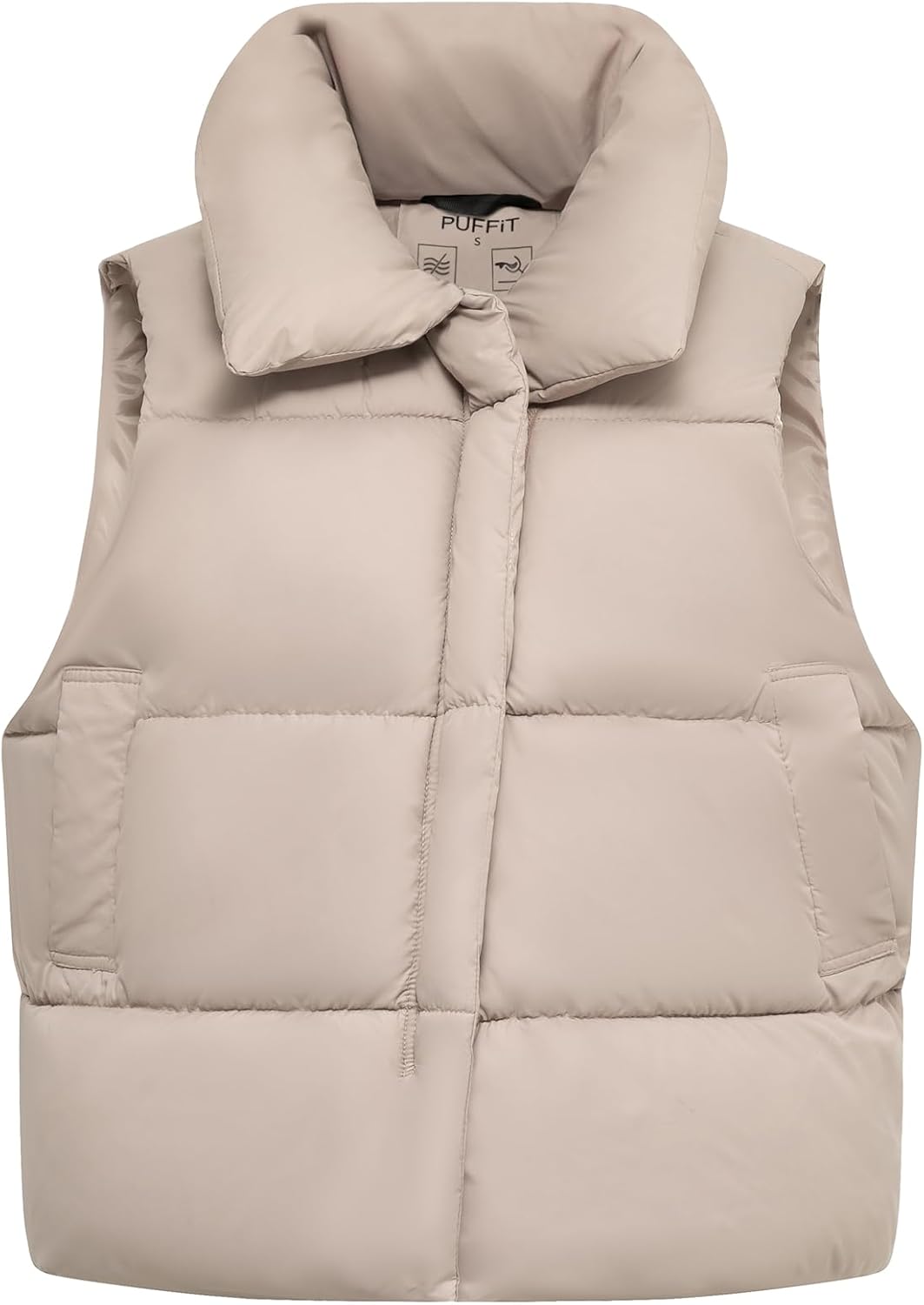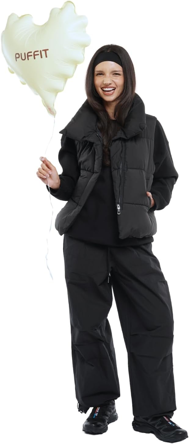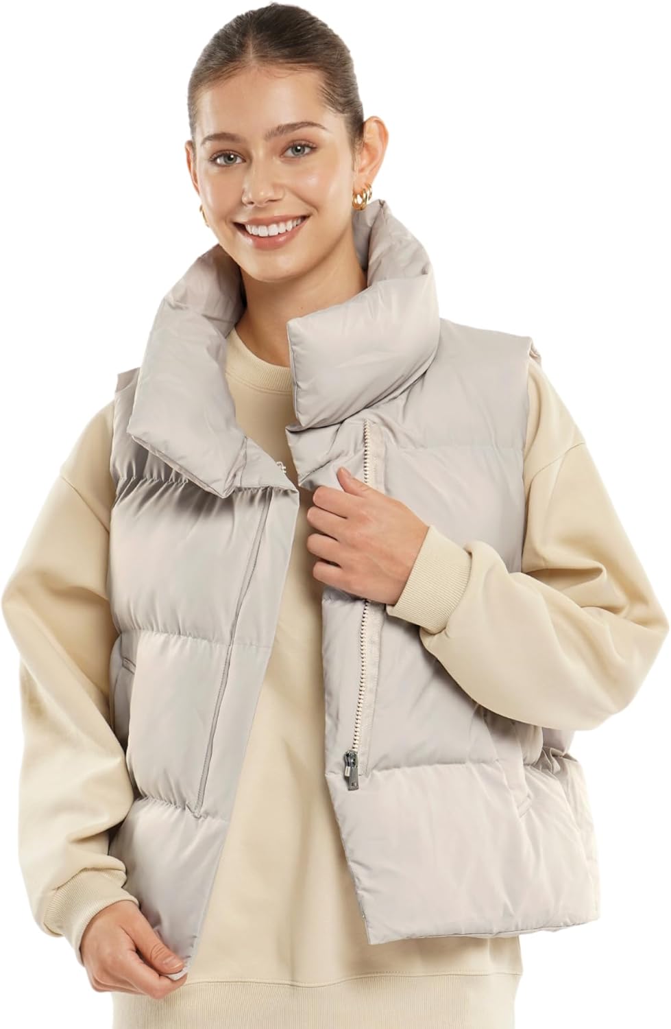 • Women Puffer Vest, Oversized Sleeveless Cropped Winter Vests Outerwear, Versatile Padded Warm Puffy Gilet Trendy