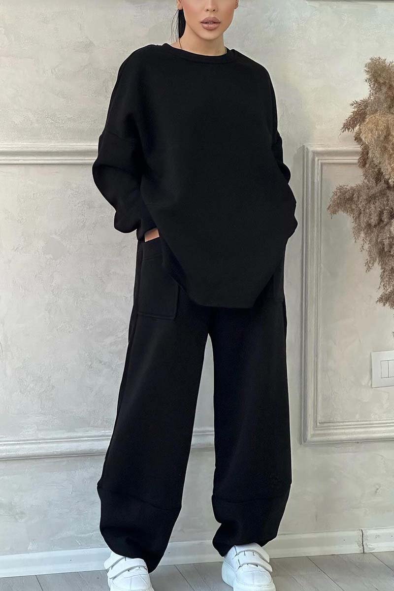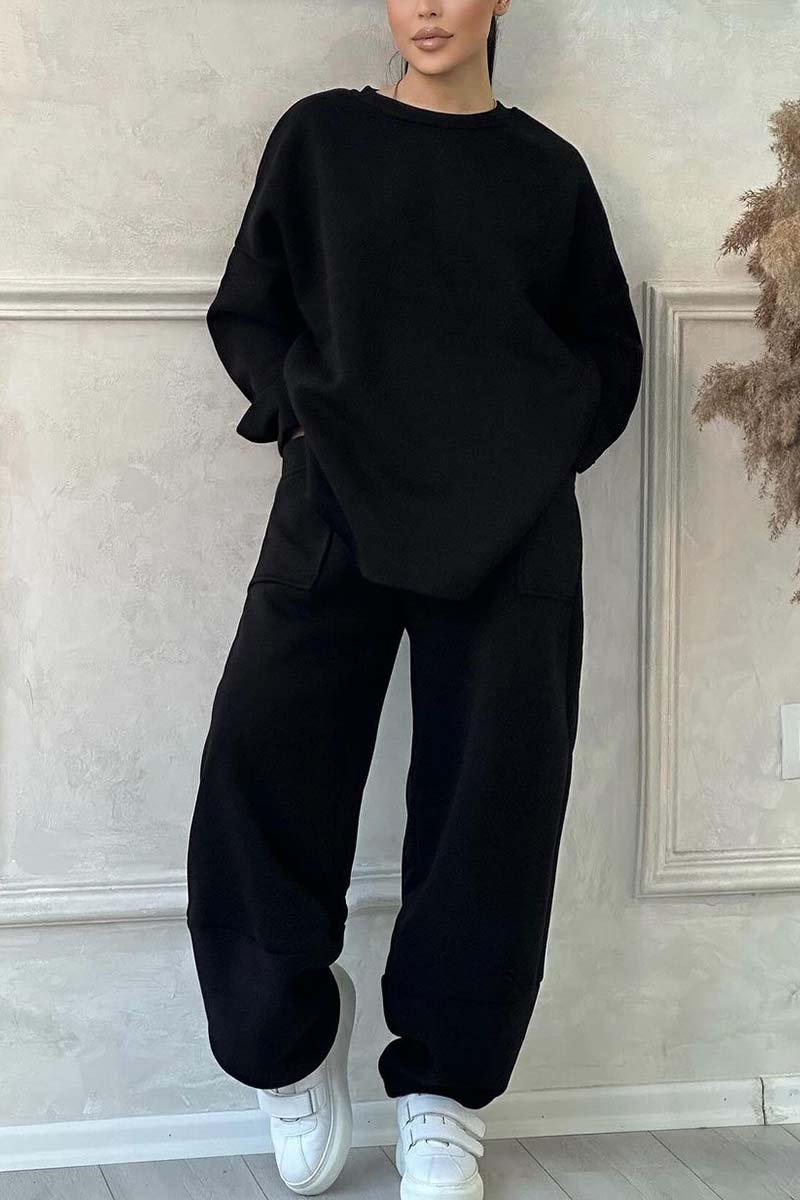 Women's Casual Solid Color Round Neck Long Sleeve Sweatshirt Sports Suit