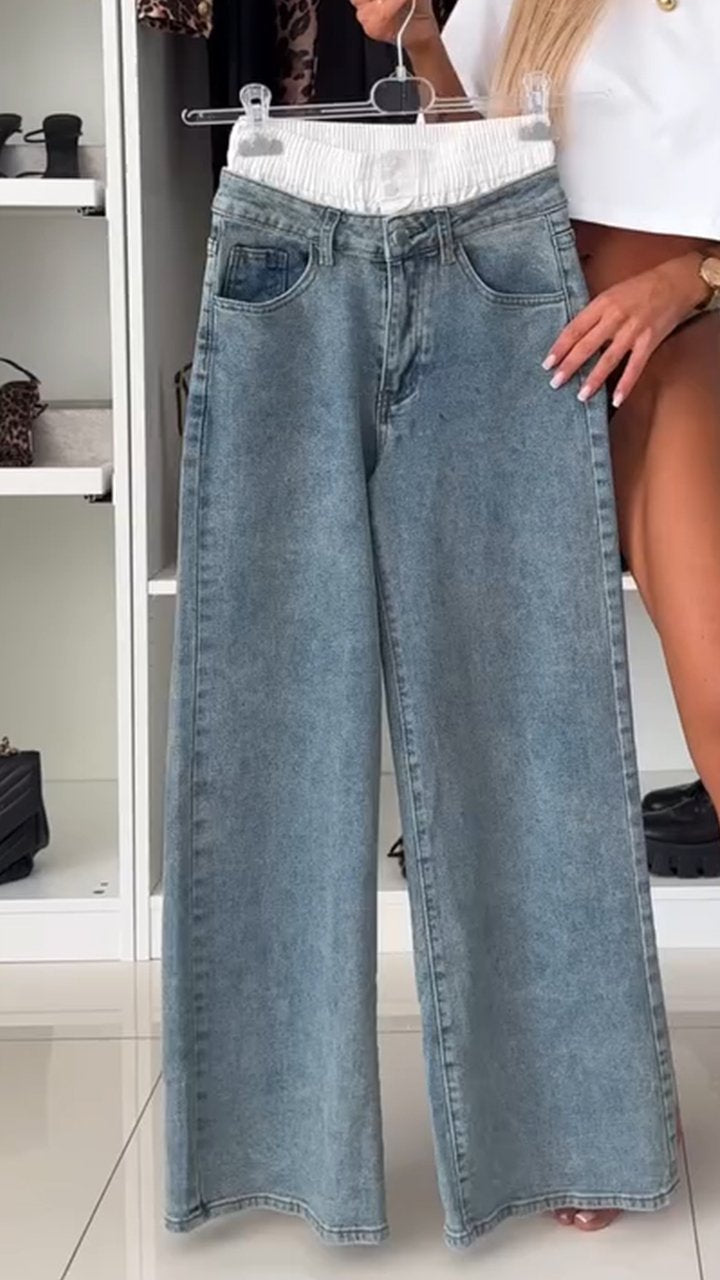 Women's Faux Two-piece Denim Straight-leg Wide-leg Trousers