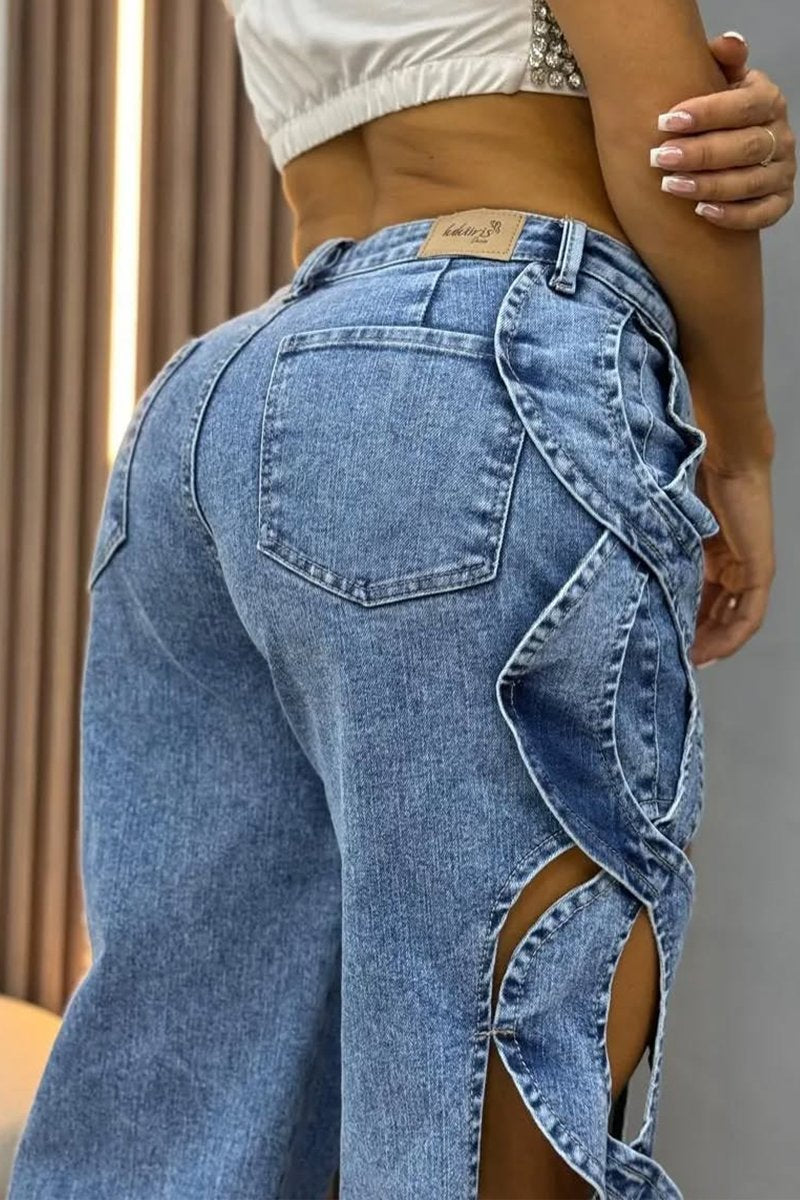 Women's Hollow Design Wide-leg Fashionable Jeans