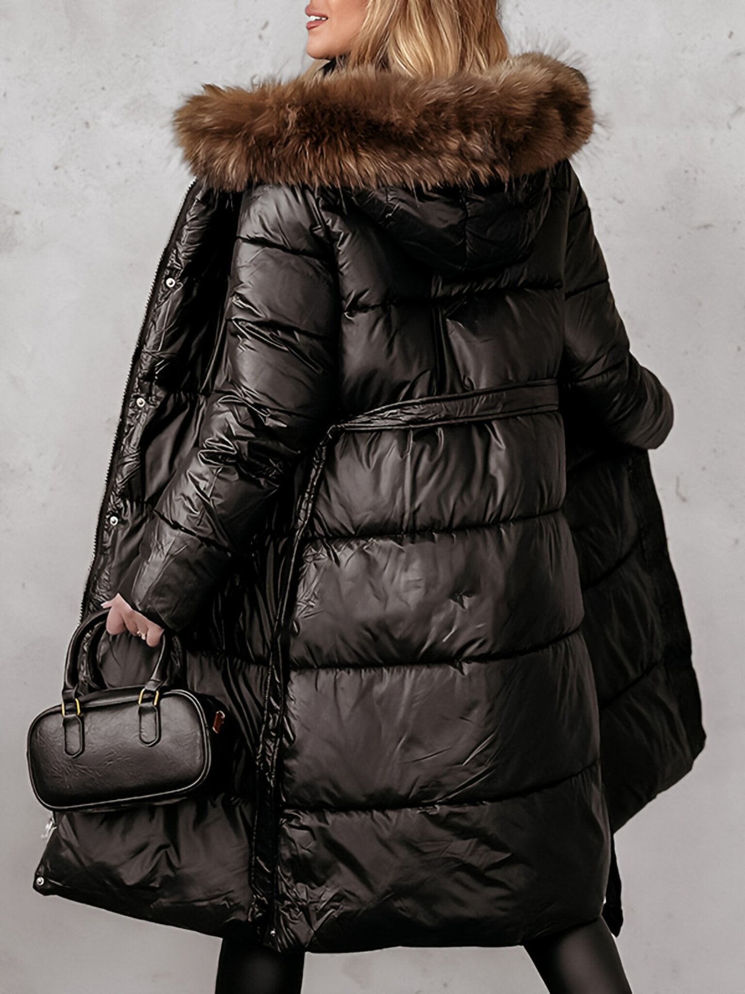 Women's Hooded Plush Long Coat