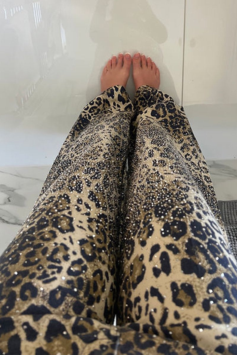 Women's Diamond Shiny Leopard Print Casual Jeans