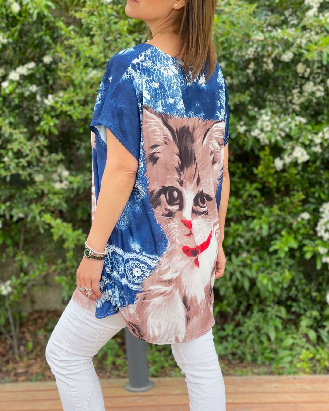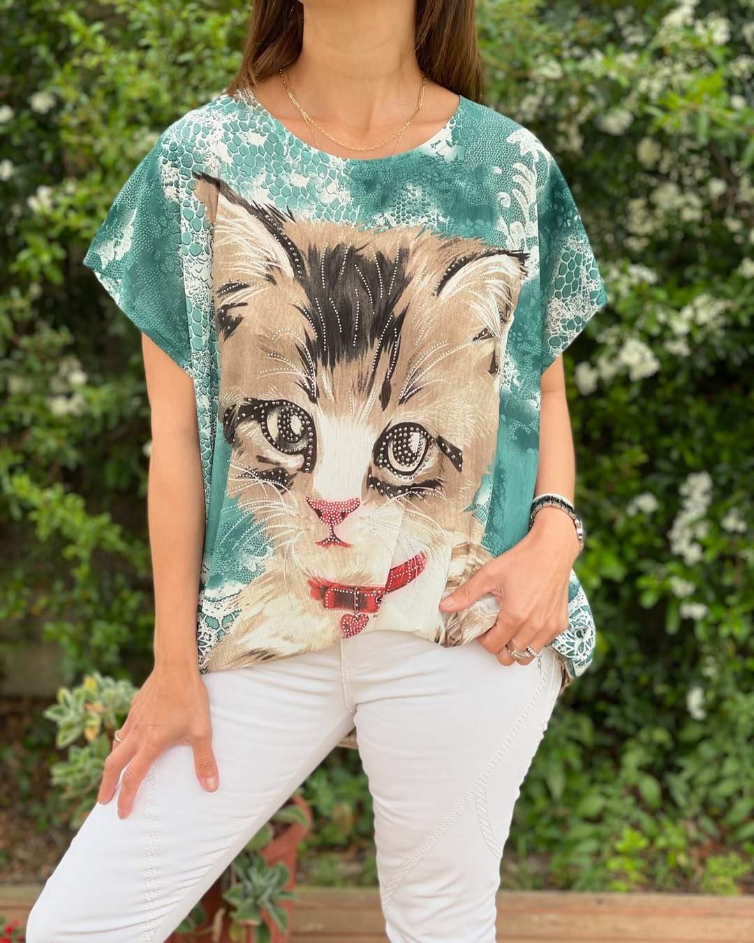 Women's Round Neck Cat Print Casual Top