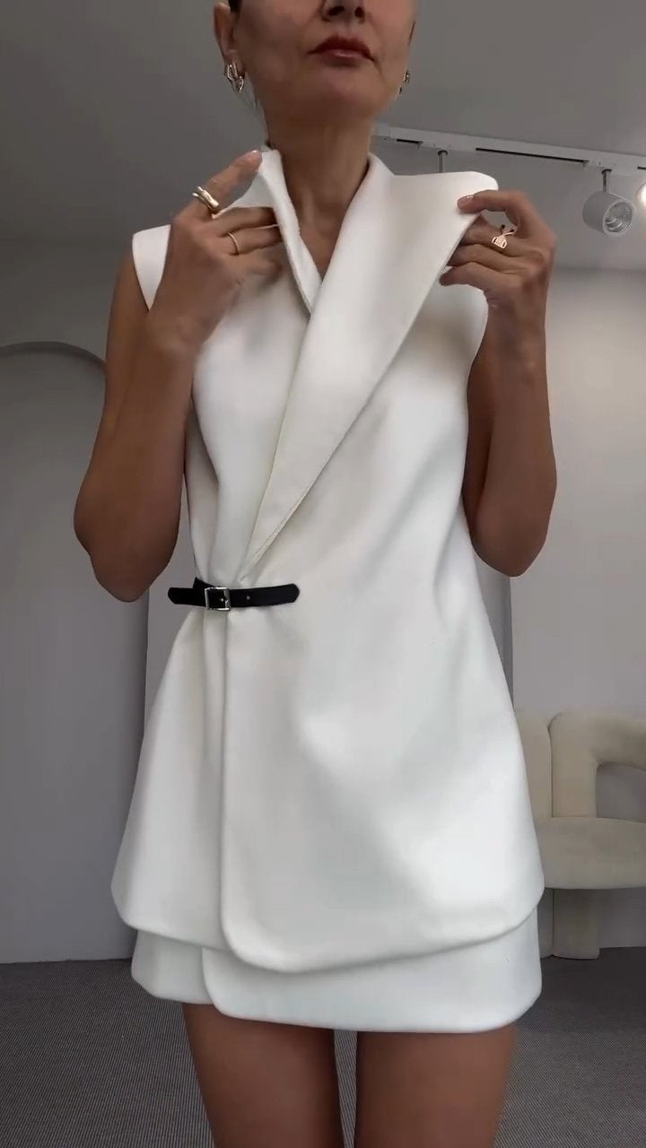Women's Sleeveless Button-down Stand Collar Suit