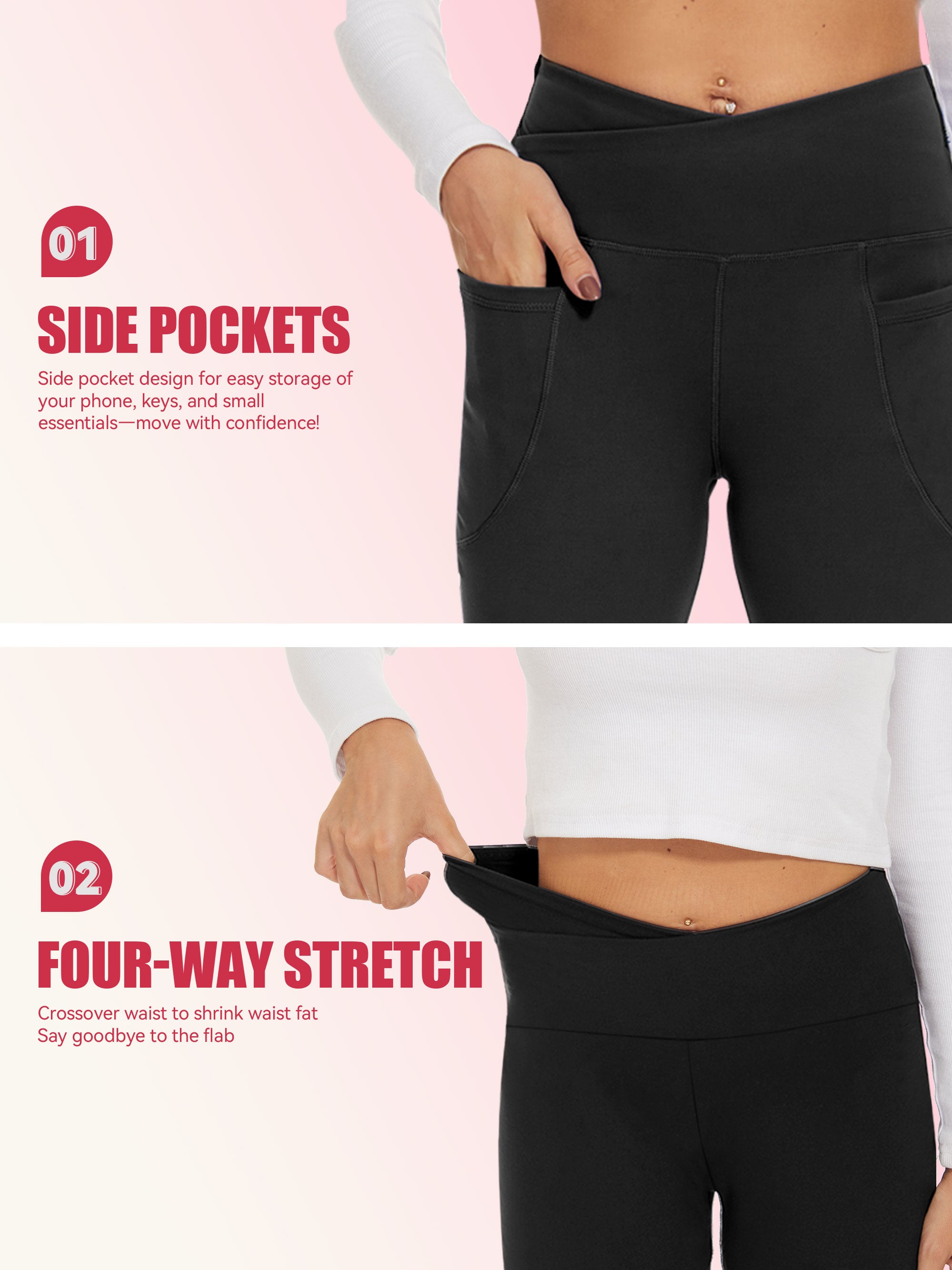 Our signature crossover waistband lifts and smooths in all the right places �� flattering, secure, and ultra-comfy from morning to night.Flare That Flatters