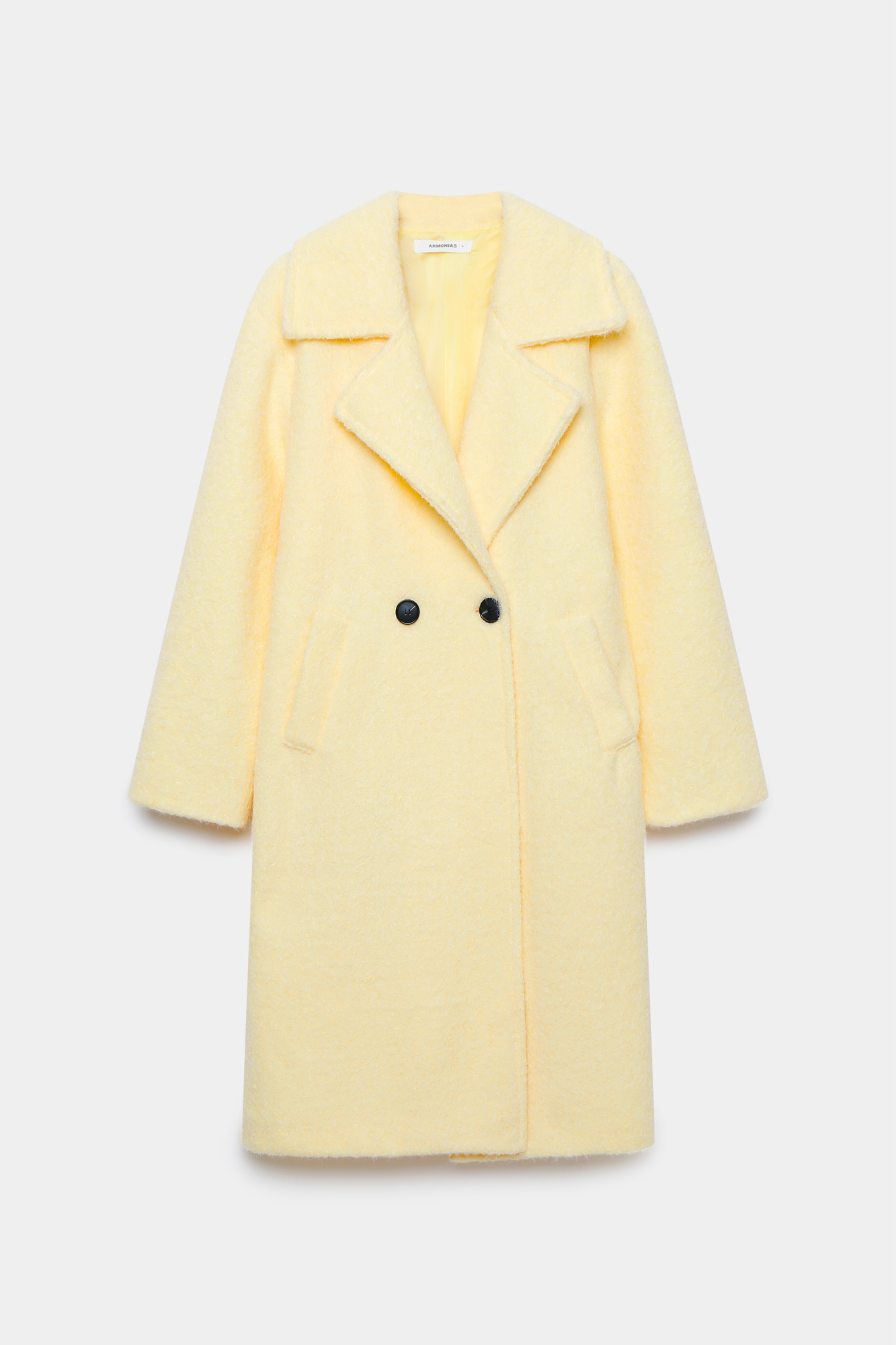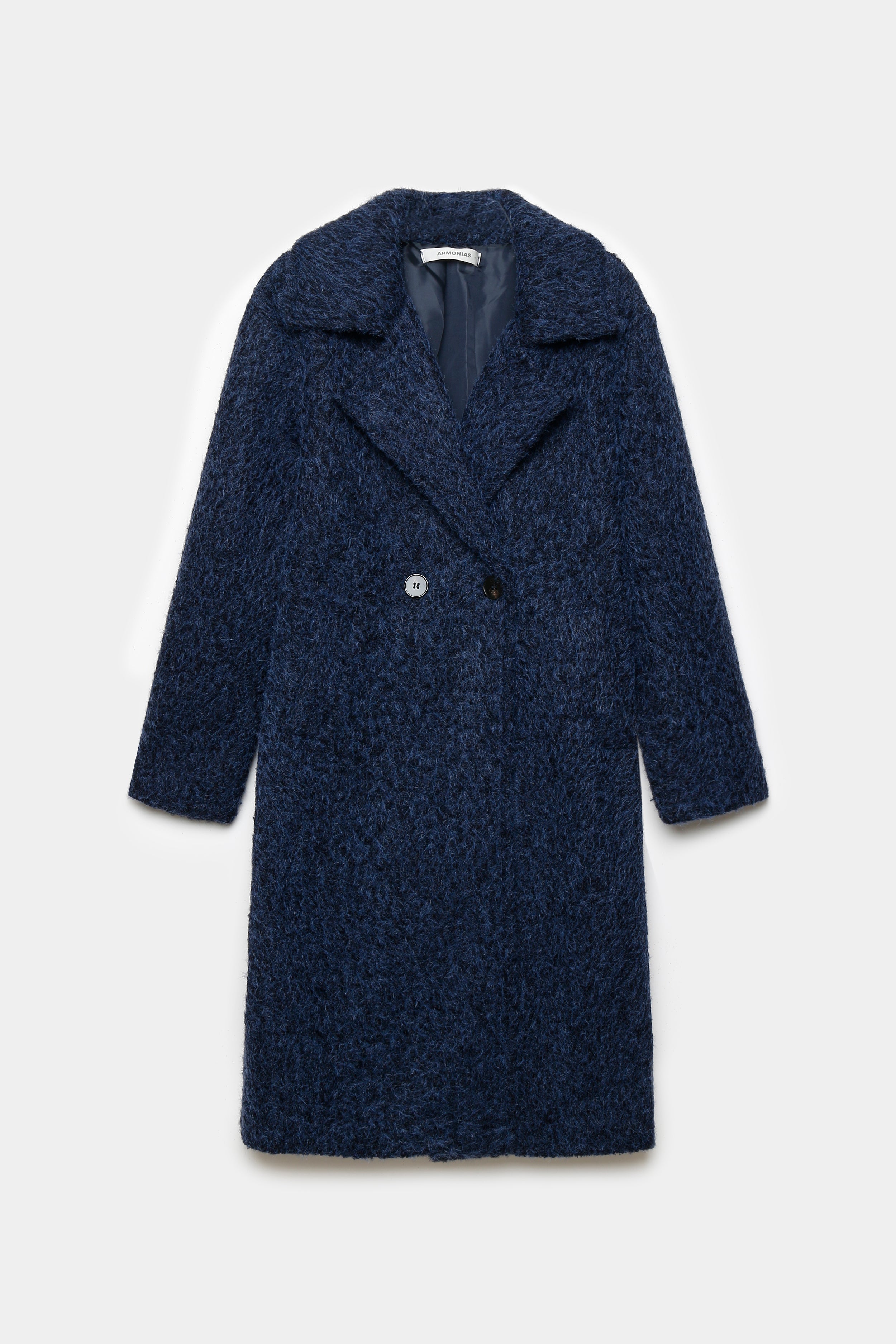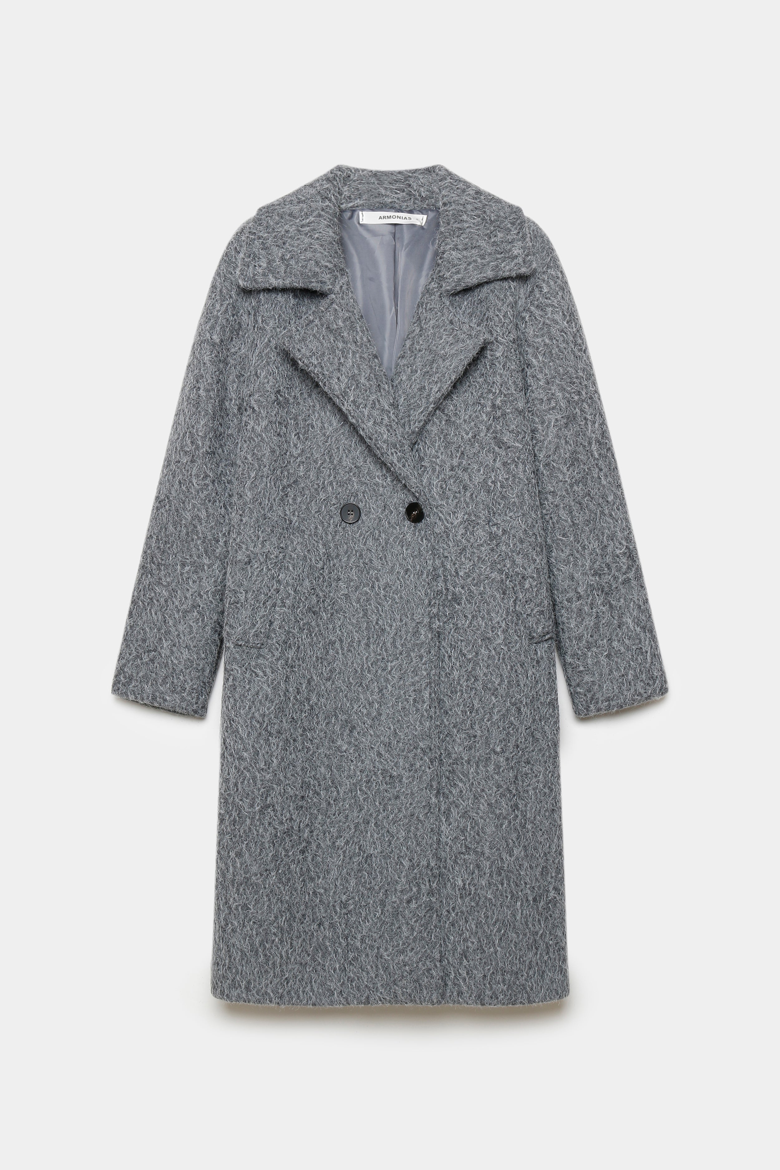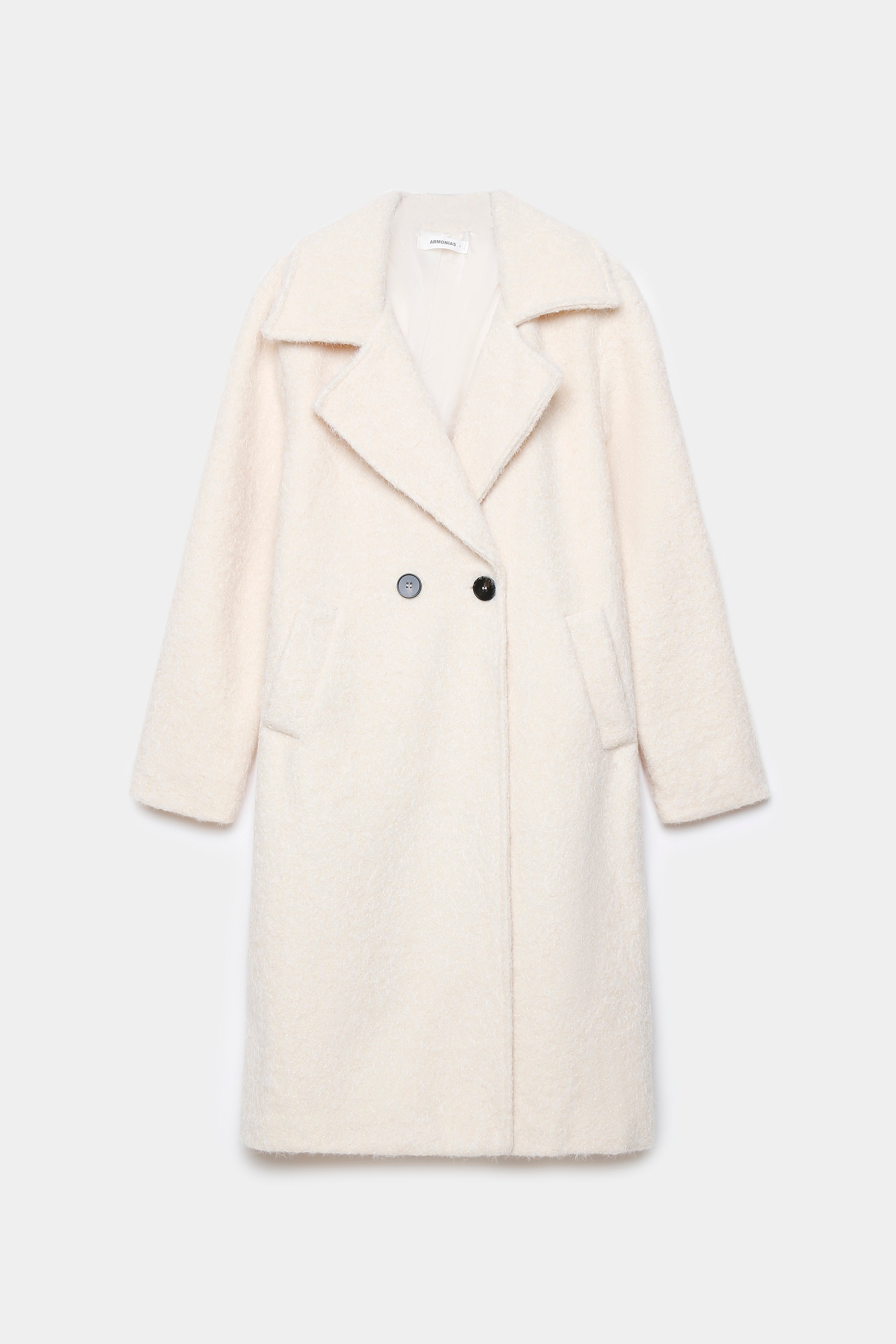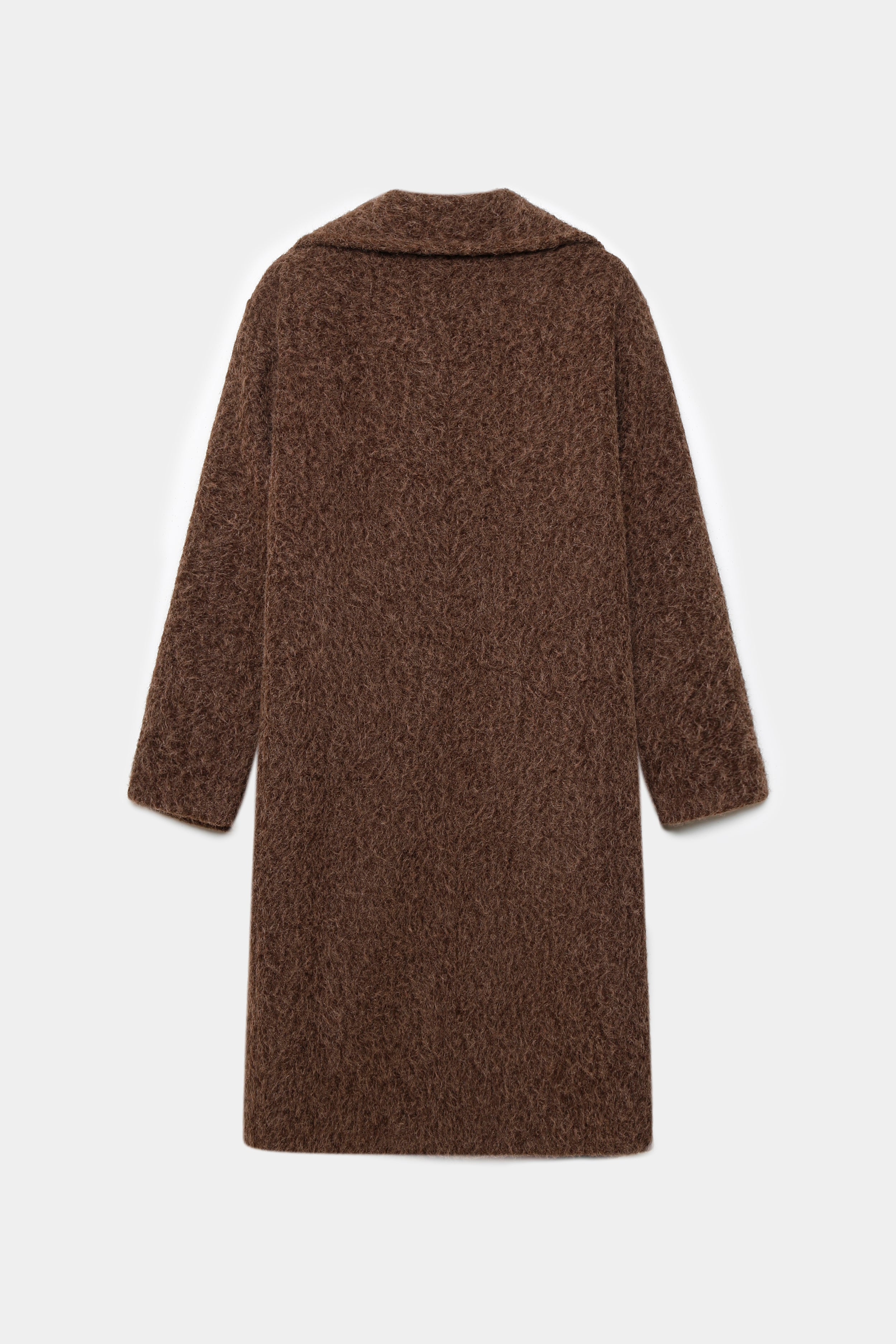 Tejido efecto pelo. Cuello solapa. Manga larga. Bolsillos laterales. Cierre de botones. Interior forrado.
