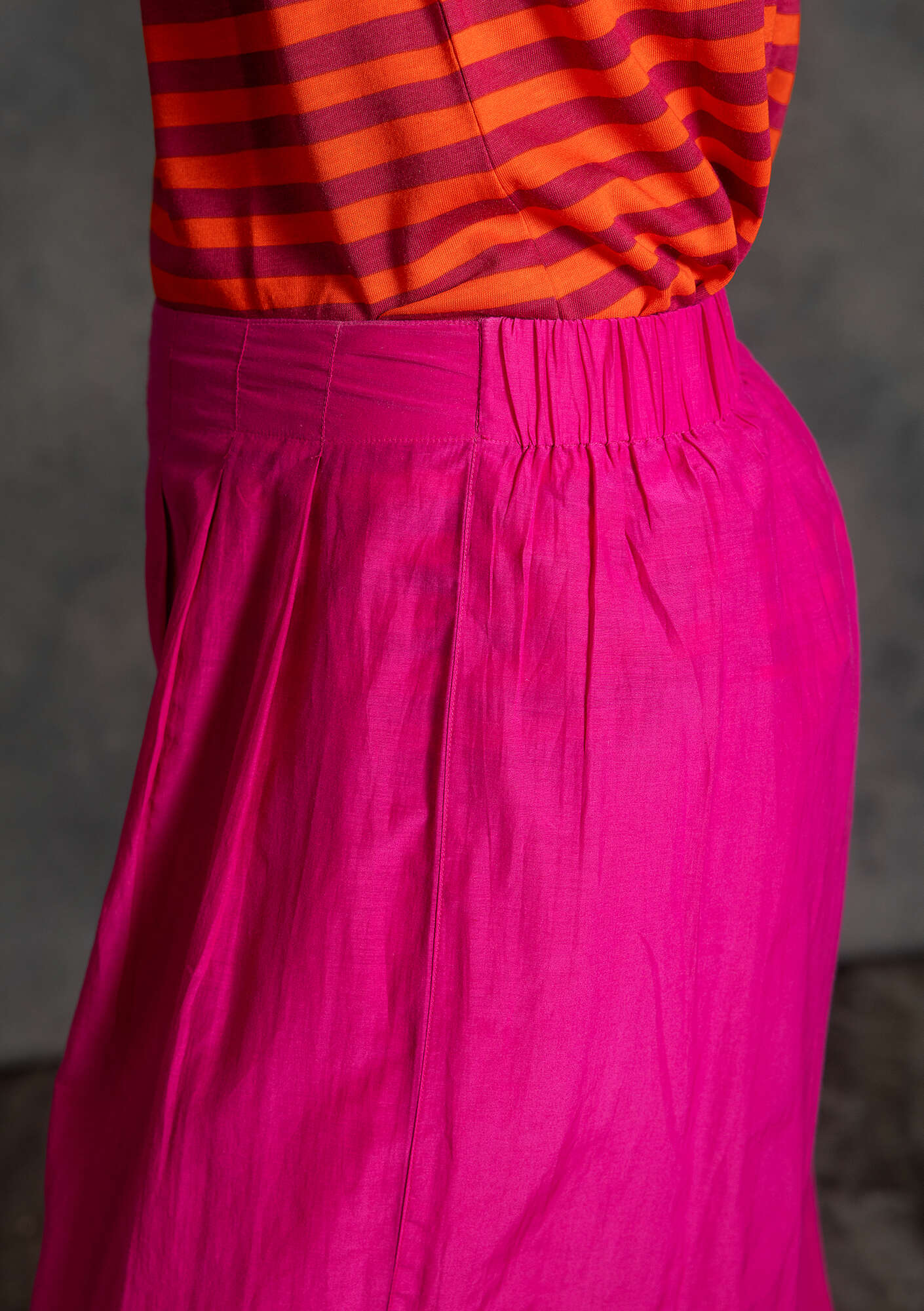 65% cotton/35% silk. The cotton and the dyeing process are certified as compliant with environmental standards. Delicate wash at 30°. Iron carefully on low heat on the reverse side. 2-3% shrinkage. Made in Kundli, India.