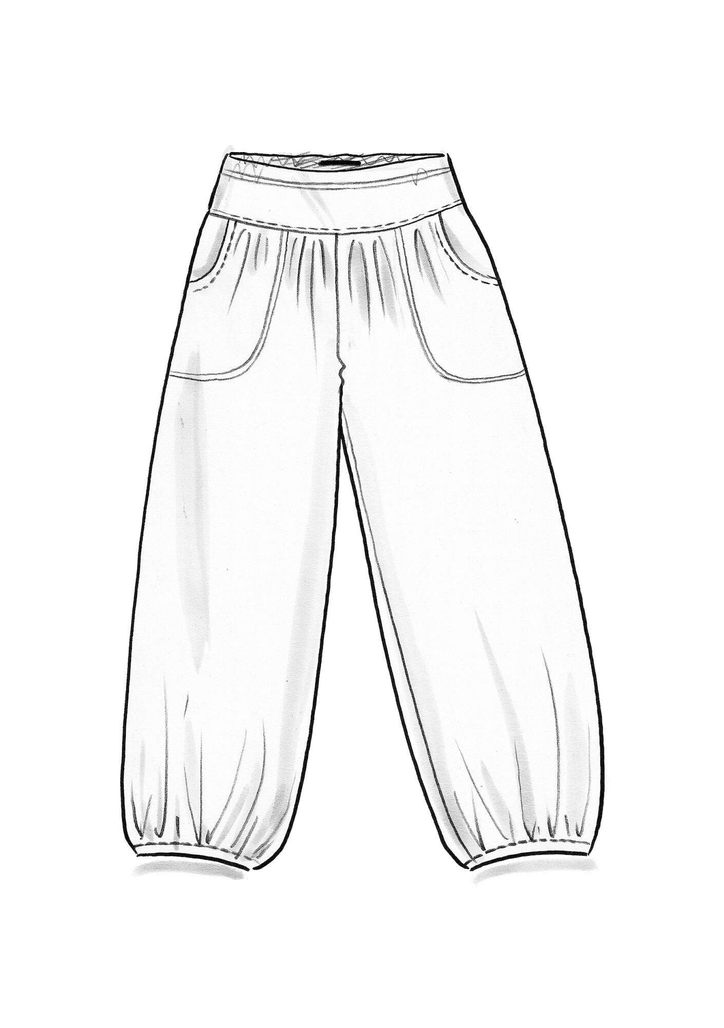 • Our popular, solid-colour harem trousers in new season colours. They have a comfortable elasticated waistband. Practical side pockets.