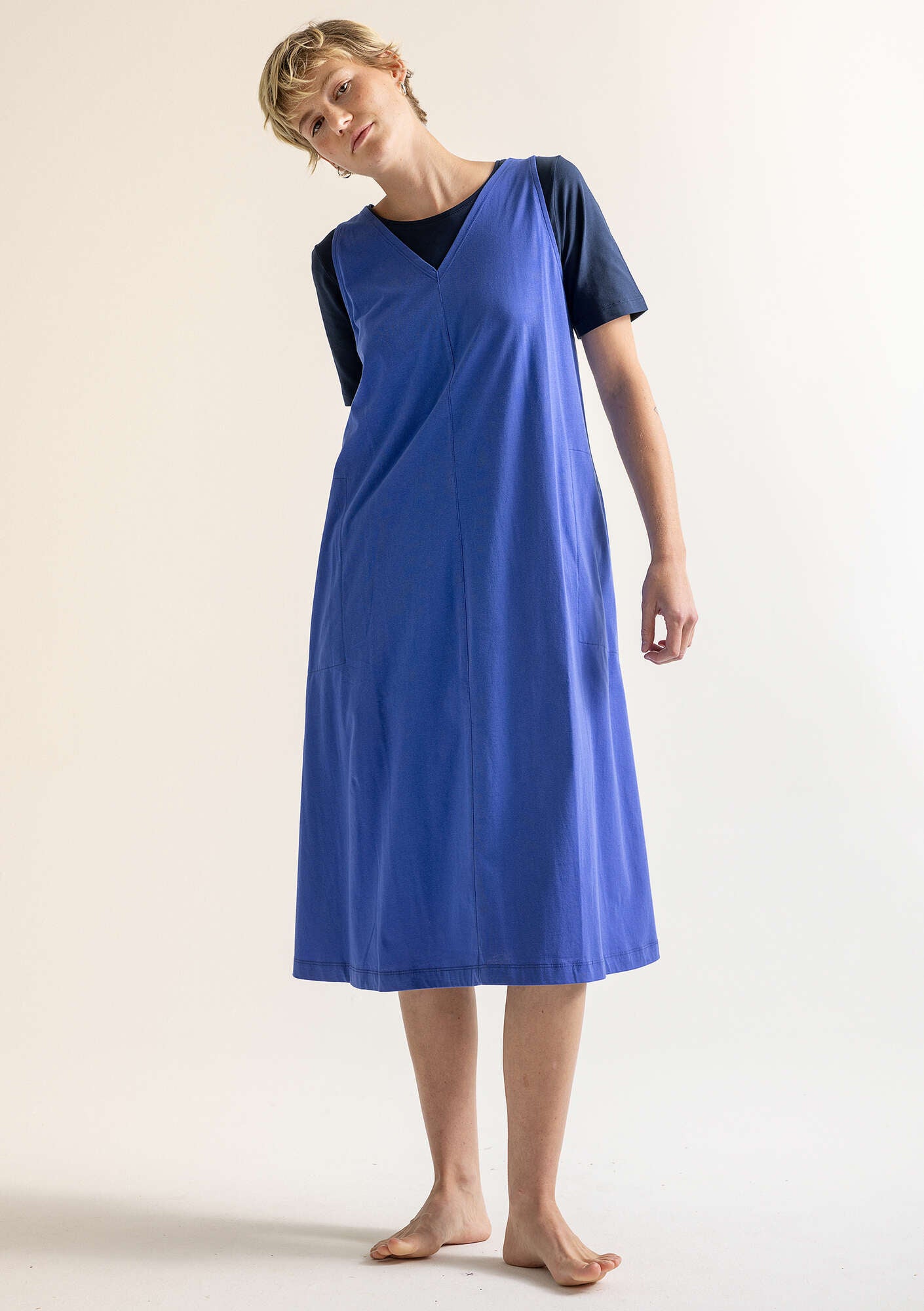 Solid-colour sleeveless dress with a v-neckline. Side slits and inset side pockets. Made from a cool, lightweight jersey fabric.