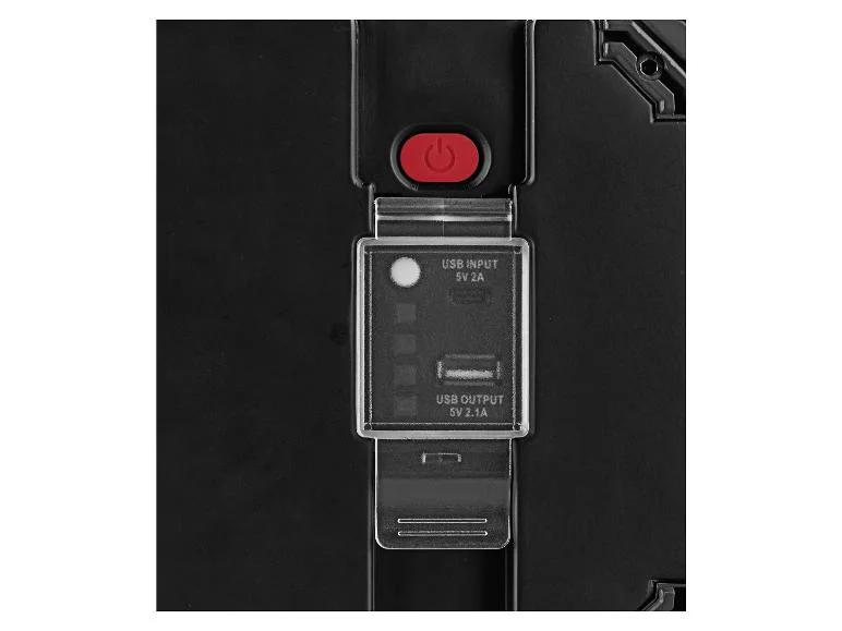 - 2 ports USB et 1 indicateur d’état de la batterie sous un couvercle rabattable de protection