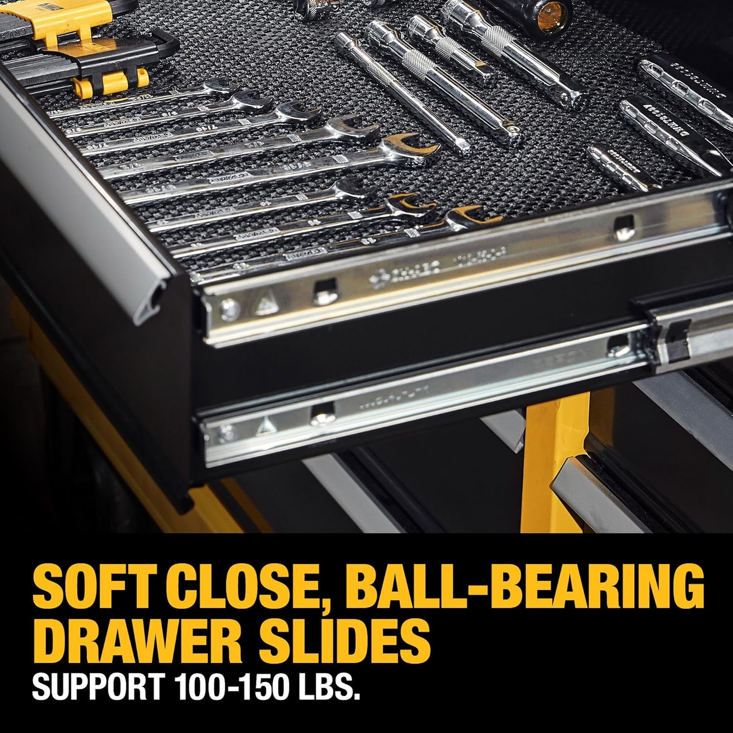 • Drawers use full extension ball bearing slides rated to a 100 lbs. load limit