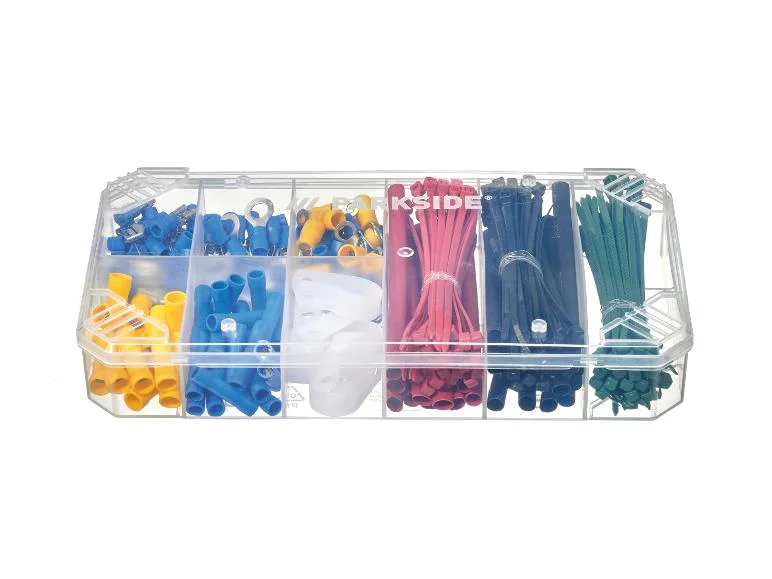| Poids: | Connecteurs rapides: environ 160 g; Set de bandes auto-agrippantes: environ 120 g; Set de serre-câbles/de colliers de câbles: environ 250 g; Bandes auto-agrippantes: environ 315 g; Serre-câbles, cosses et gaines: environ 121 g; Connecteurs thermorétractables: environ 114 g ; Pinces crocodiles: environ 102 g |