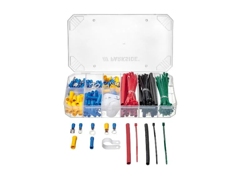 | Ensemble: | Connecteurs rapides: 65 pièces; Set de bandes auto-agrippantes: 50 pièces; Set de serre-câbles/de colliers de câbles: 308 pièces; Bandes auto-agrippantes: 80 pièces; Serre-câbles, cosses et gaines: 700 pièces; Connecteurs thermorétractables: 85 pièces; Pinces crocodiles: 49 pièces |