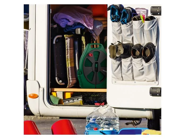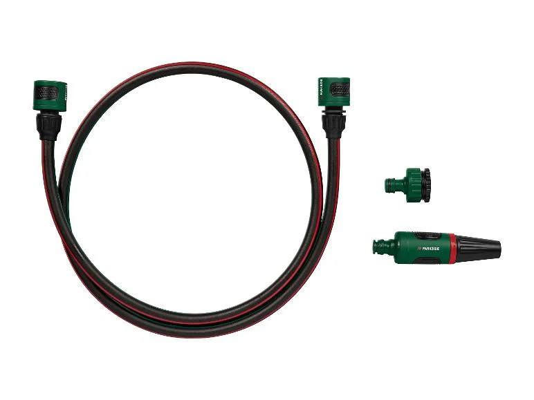 | Accessoires | Enrouleur avec tuyau : 1x tuyau de 10 m 1x tuyau de raccordement de 1,5 m 1x raccord de tuyau 3/8" avec arrêt d'eau 2x raccord de tuyau 3/8" 1x raccord de robinet avec filetage intérieur 1" + réducteur avec filetage intérieur 3/4" 1x pulvérisateur de jardin Enrouleur avec tuyau plat : 1x tuyau plat de 20 m 2x raccord de tuyau 1/2" 1x raccord de robinet avec filetage intérieur 3/4" 1x buse de pulvérisation |