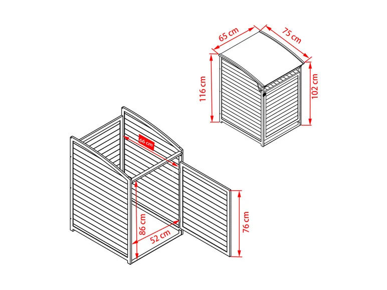 0,65 x 1,15 x 0,75 m (l x h x p)