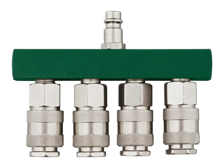 - Répartiteur 4 voies, répartiteur 2 voies + régulateur de pression, set de raccords pneumatiques, lubrificateur pour outils pneumatiques + séparateur d'eau : aluminium, acier, plastique