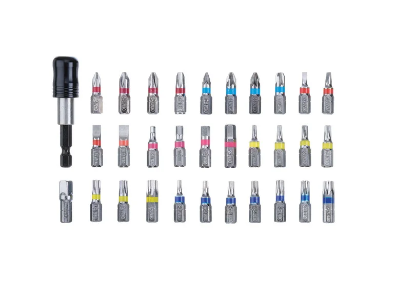 - Embouts avec code couleur pour les empreintes standards dans les tailles de vis principales