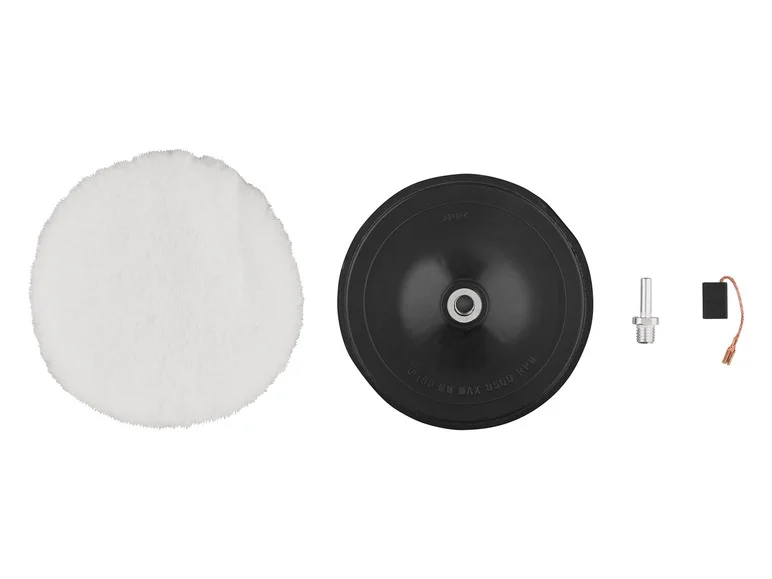 Accessoires inclus : 1x plaque velcro, 1x embout de polissage, 1x douille de centrage, 1x brosse à charbon de rechange