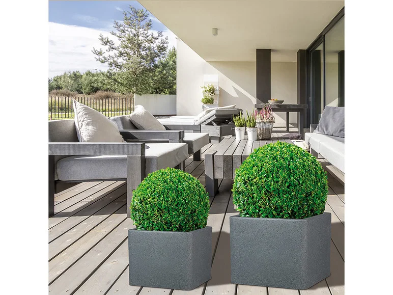 • Jardinière en plastique de haute qualité avec un aspect béton très tendance, offrant un espace pour des idées de plantation individuelles