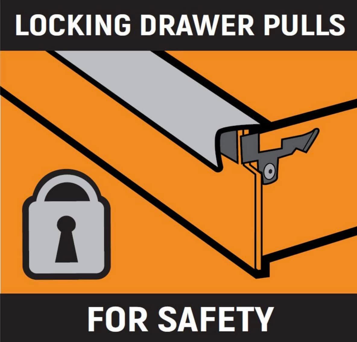 - Drawers use full extension ball bearing slides rated to a 100 lbs. load limit