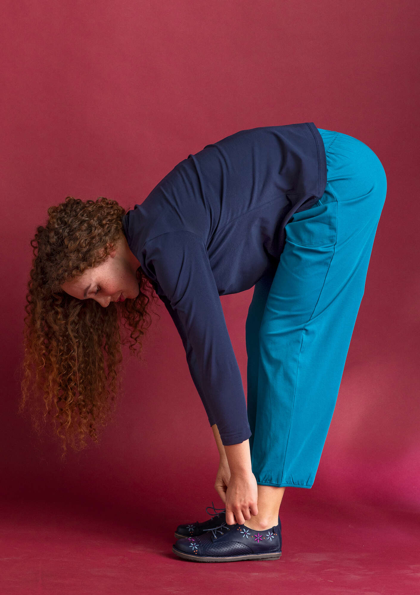 Our popular, solid-colour harem trousers in new season colours. They have a comfortable elasticated waistband. Practical side pockets.