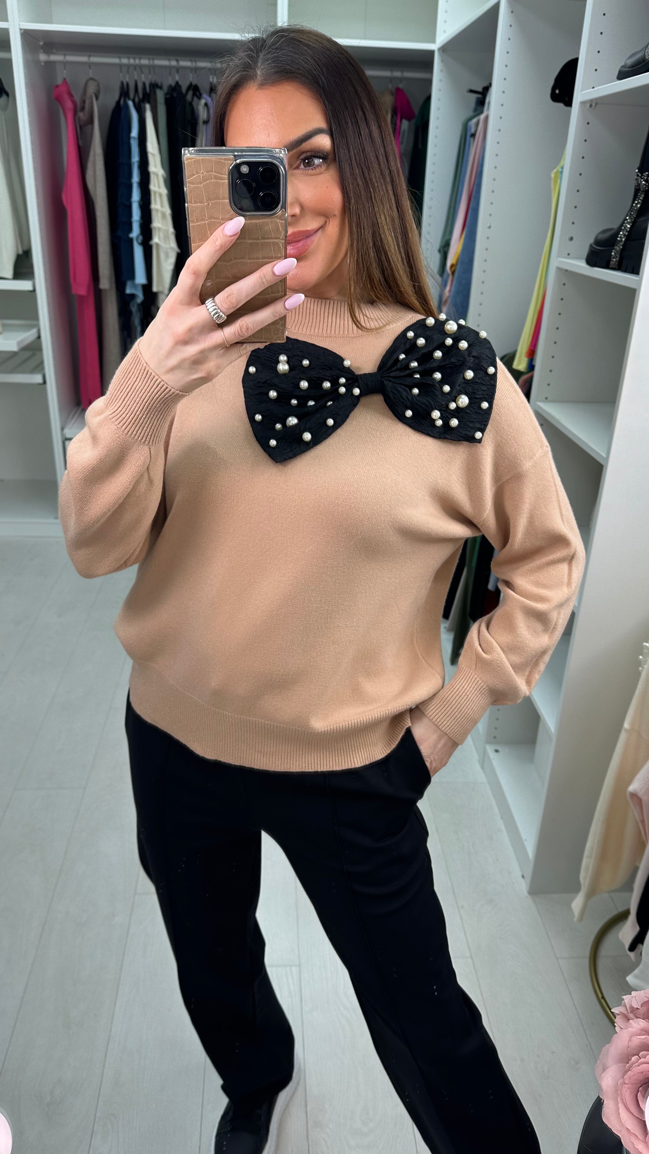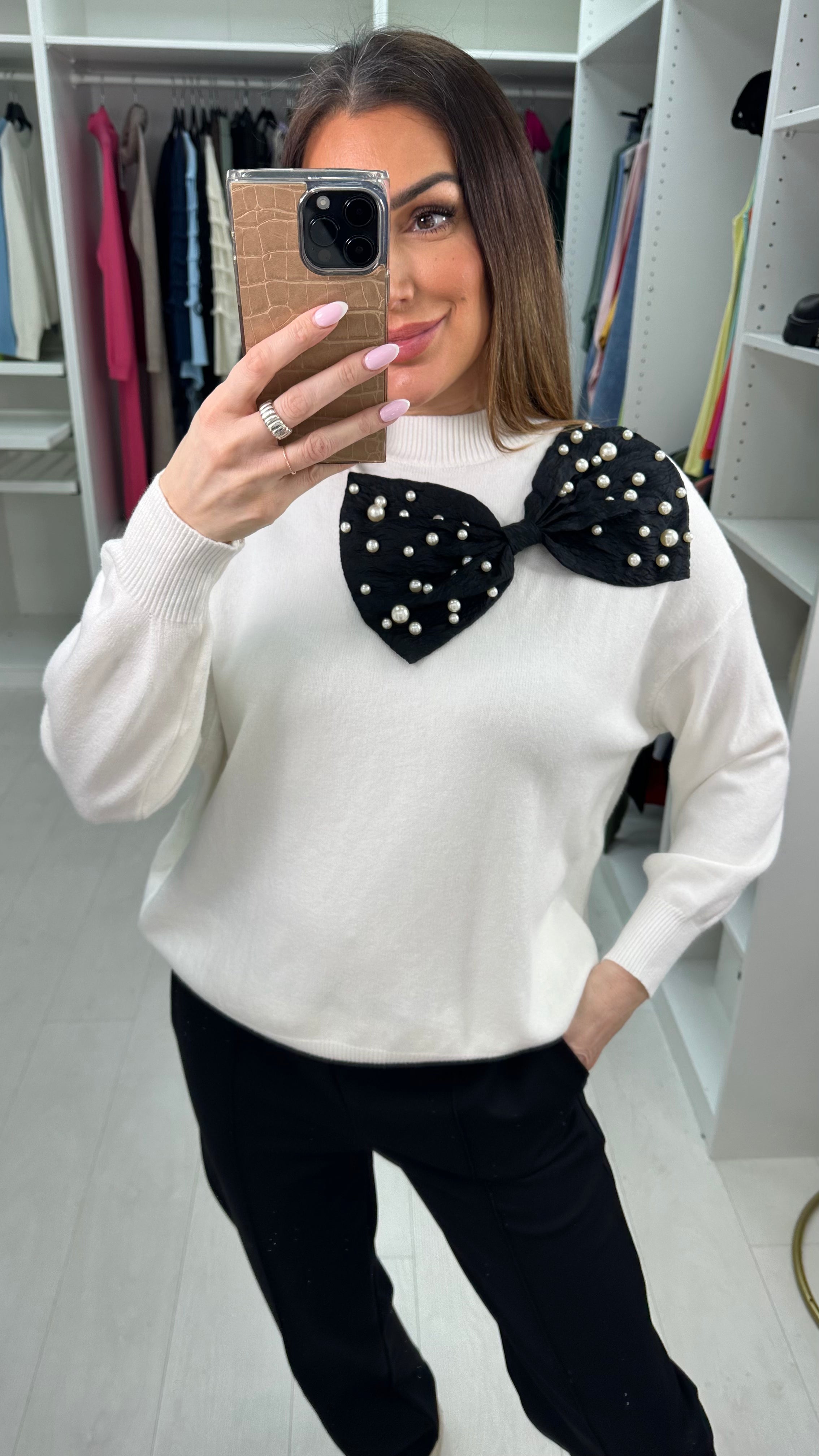 Capella Pearl Bow Detail Super Soft Jumper