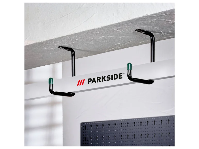 - Crochet mural, profilé en CPour le rangement peu encombrant de vélos, échelles, outils de jardinage, etc.