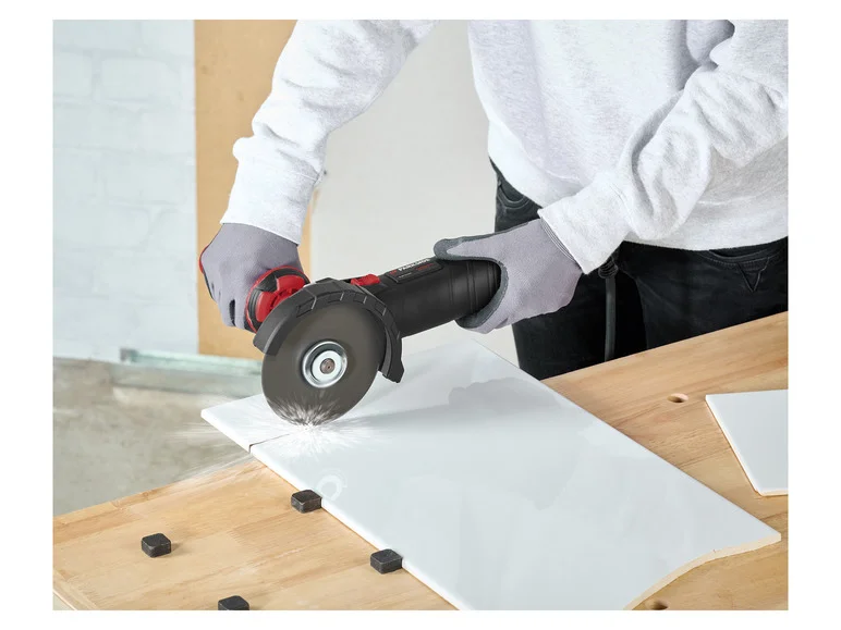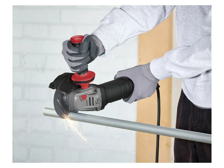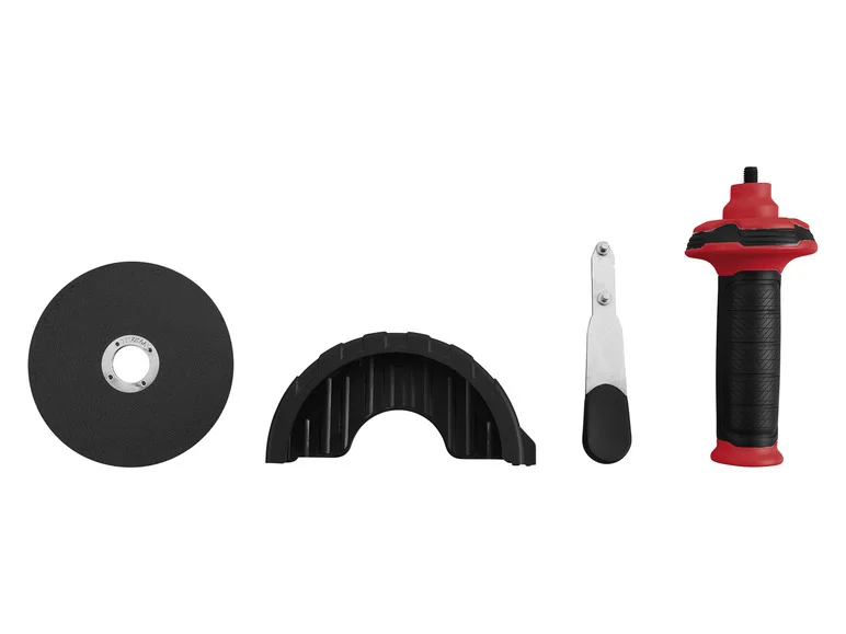- Accessoires : 1 x poignée supplémentaire, 1 x capot de protection réglable sans outil, 1 x disque à tronçonner universel Ø 125 mm, 1 x clé à deux trous (peut être rangée dans la poignée)