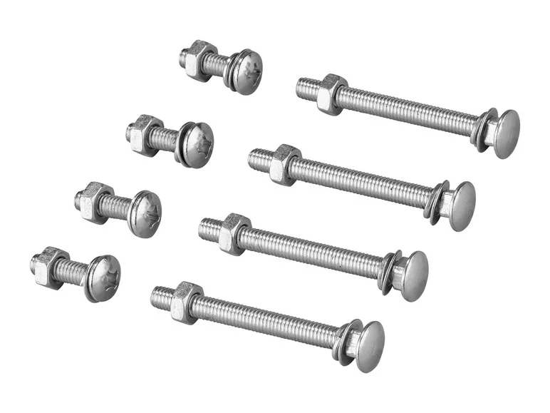 • Accessoires inclus : 4 vis à tête cylindrique (M6 x 60 mm), 4 vis à tête cylindrique (M6 x 16 mm), 4 rondelles (M6), 4 rondelles élastiques (M6), 4 écrous (M6).