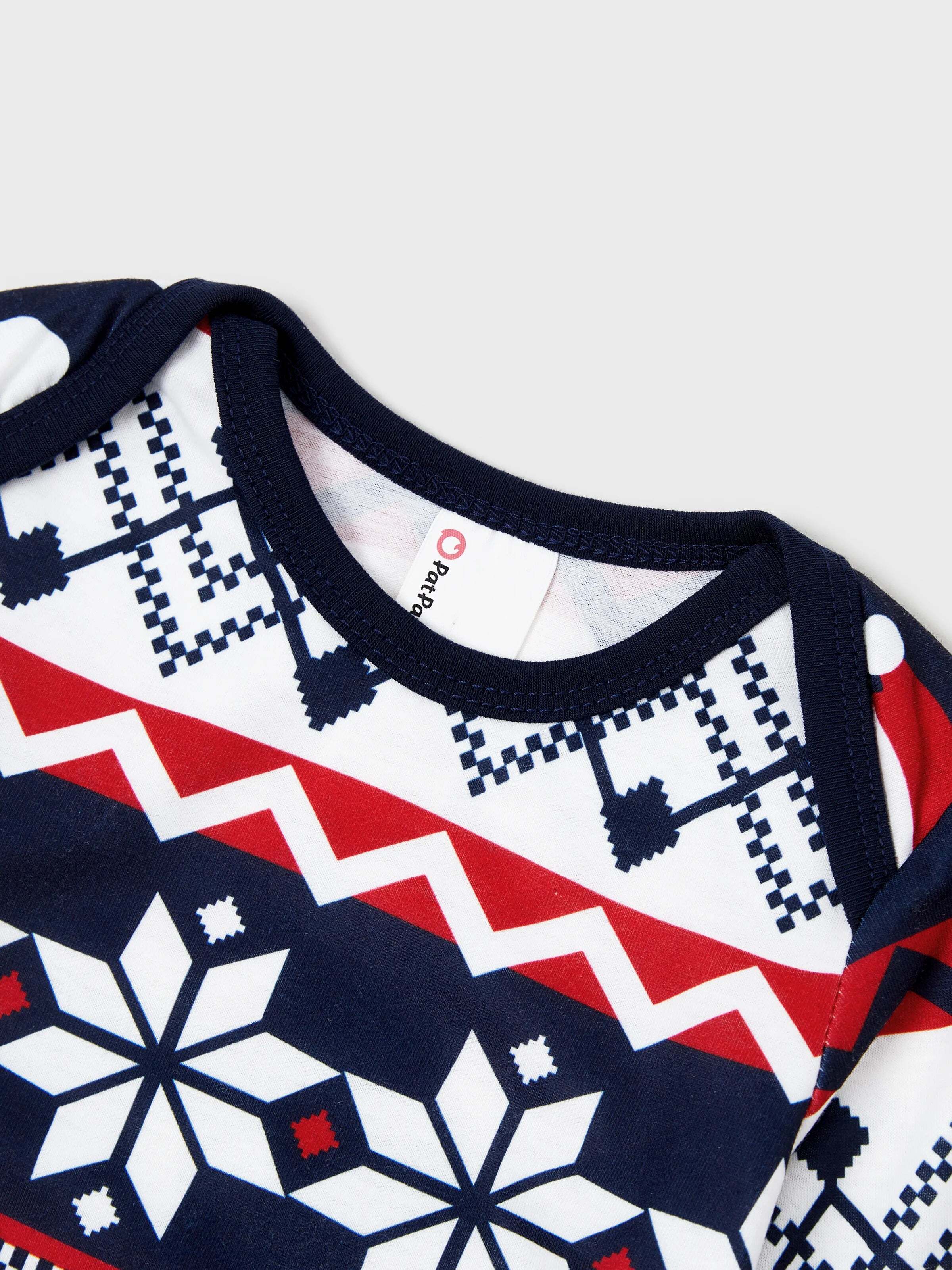 • Christmas Matching Family Pajamas Set Glow In The Dark Santa Claus Print PJS with Christmas Socks Deep Blue