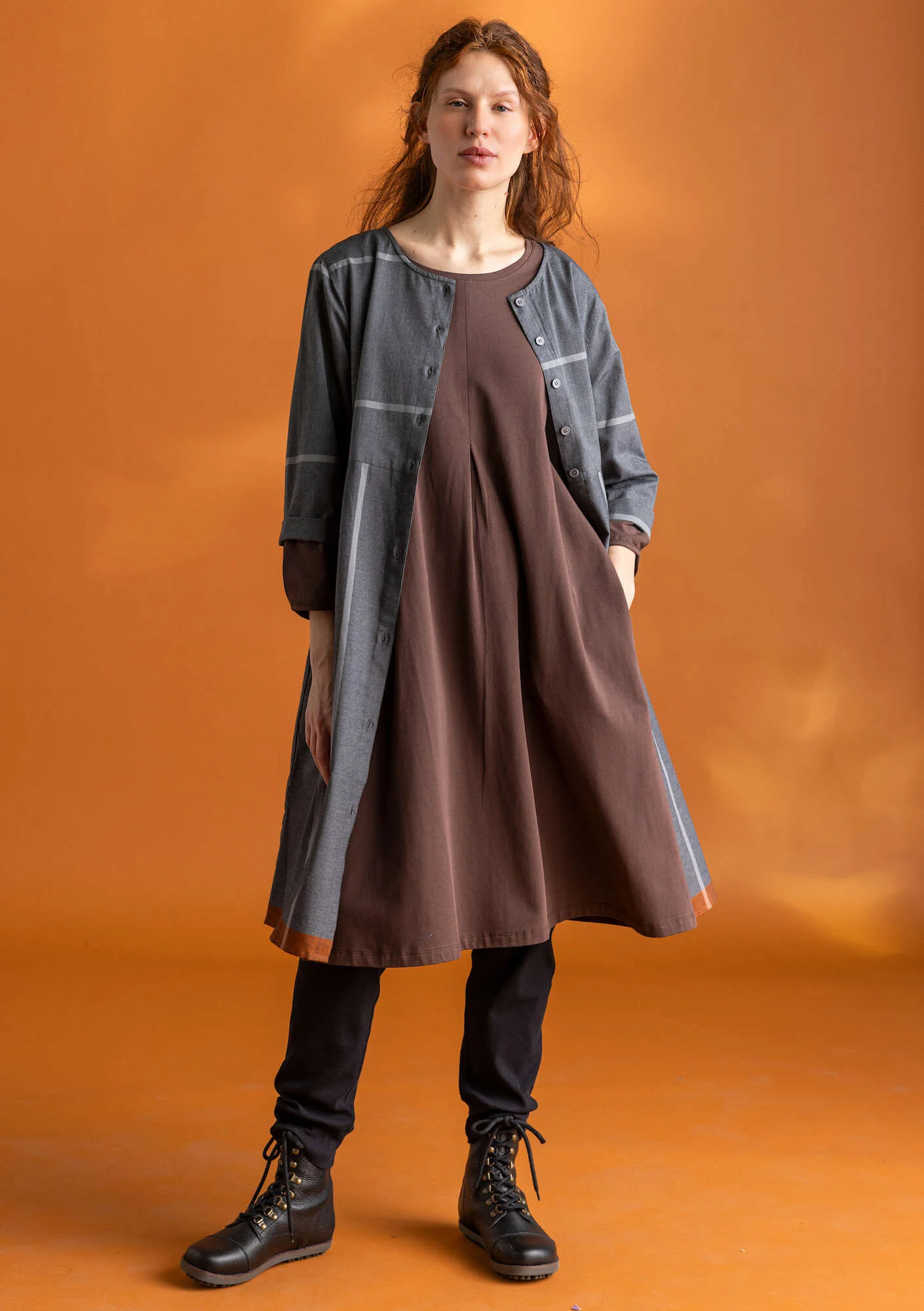 organically farmed and certified cotton, flax and hemp, wool certified as organic, Swedish wool, naturally/dew-retted flax and hemp, CmiA and BCI cotton, silk, alpaca wool, vegetable tanned and dyed leather and FSC® certified wood and natural rubber. TENCEL™, LENZING™ and ECOVERO™ are trademarks of Lenzing AG.