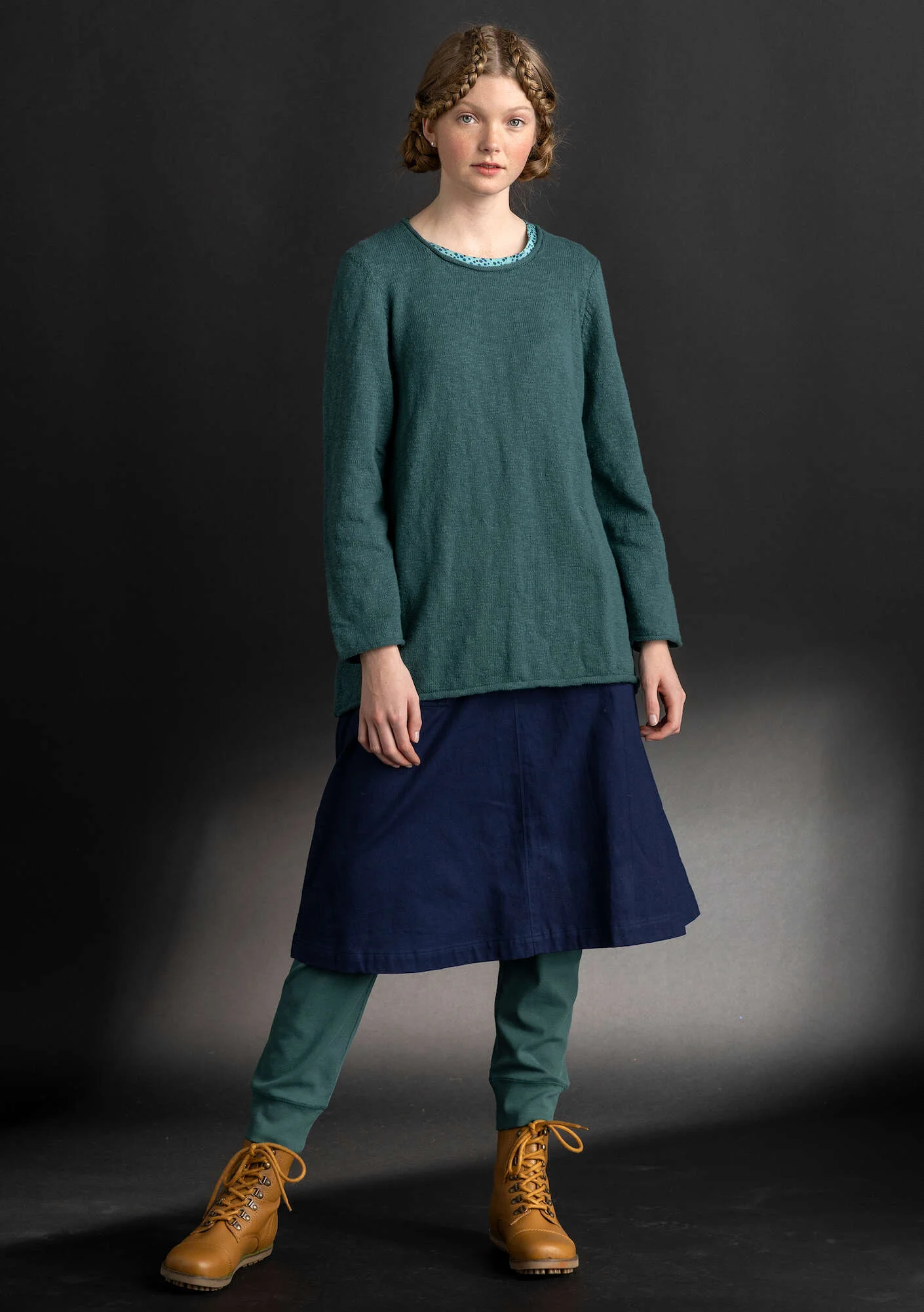 Gudrun’s Good Fibresu200bThese products are made entirely or partly from materials grown or developed from a sustainable perspective. We require transparency and certificates. The fibers and materials we classify as good environmental choices are: recycled materials, TENCEL™ Lyocell, TENCEL™ Modal, TENCEL™ Modal x Micro, LENZING™ ECOVERO™ Viscose, organically grown and certified cotton, linen and hemp, certified organic wool, Swedish wool, natural/dew-retted linen and hemp, CmiA and BCI cotton, silk, alpaca wool, vegetable tanned and dyed leather anc FSC® certified wood and natural rubber. TENCEL™, LENZING™ and ECOVERO™ are trademarks of Lenzing AG..