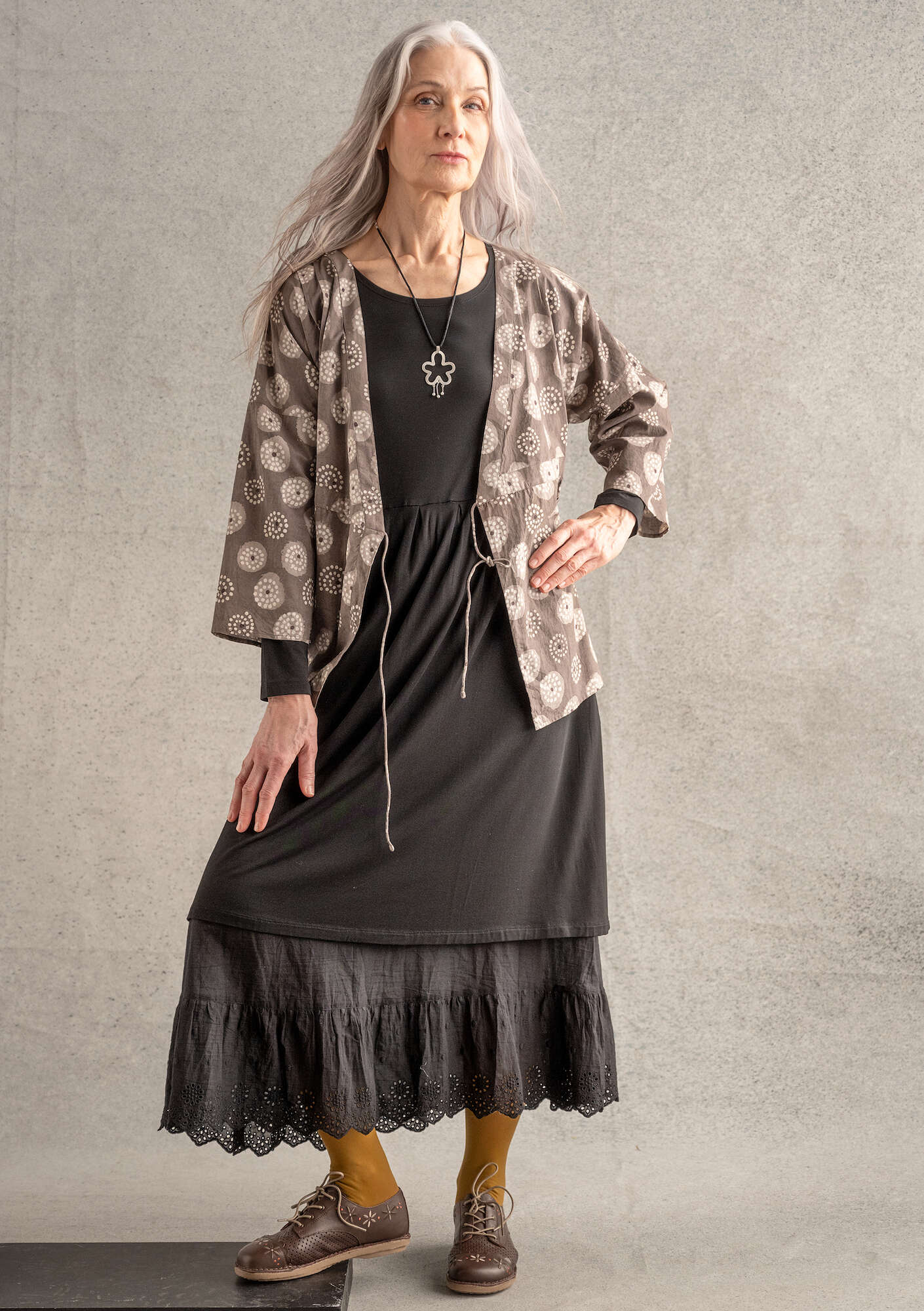 Fit Standard fit, but generous fit at the bottom Length: M 72 cm 1/2 Bust: 54 cm 1/2 Hem width: 100 cm Sleeve length from centre back: 67 cm
