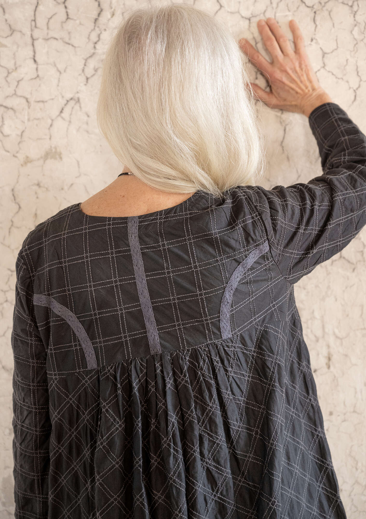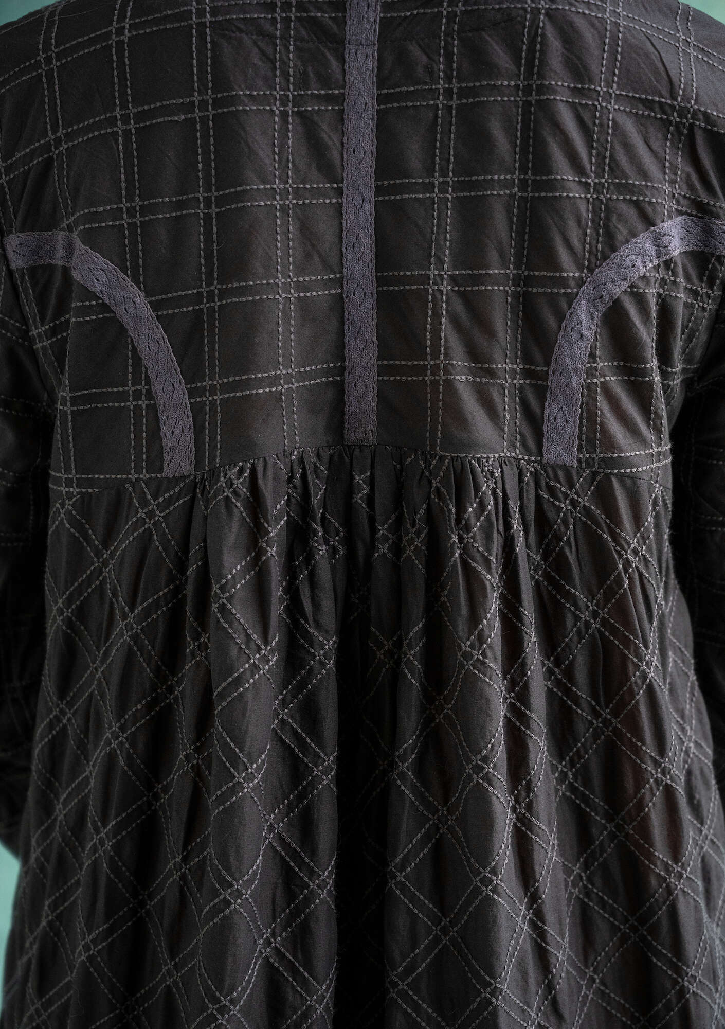- All-over embroidery. Button-through style. Empire cut with full-length sleeves and mother-of-pearl buttons. Tone-on-tone pattern running in various directions. Seamed waist with a gathered skirt. The cut of the bodice at the back is inspired by traditional folk dresses with lace ribbon appliquu00e9 adding an exquisite detail.