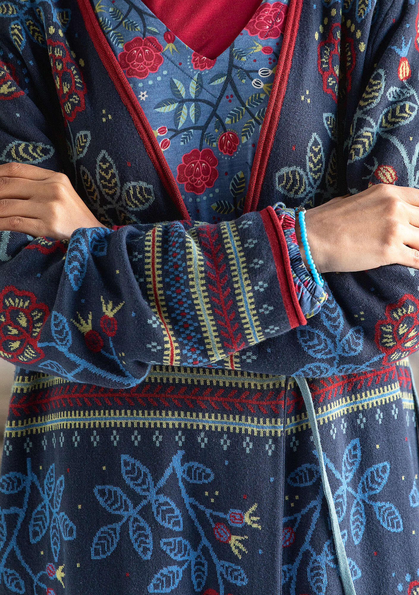 - Jacquard wrap cardigan with a beautiful rose pattern and striking border. Featuring rolled edges, knitted tie cords and full-length sleeves.