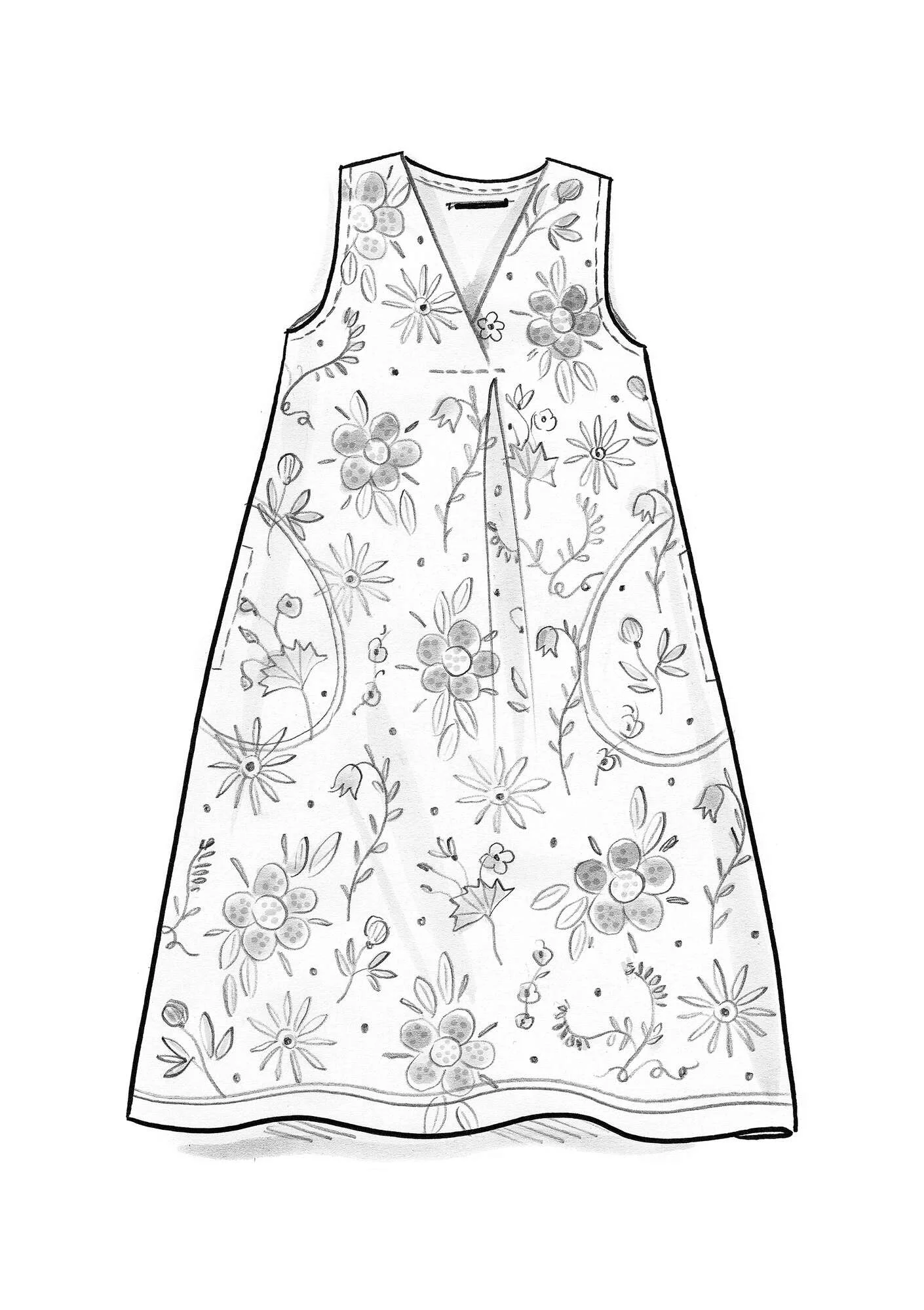 - Sleeveless jersey dress with floral print. V-neck style with a x pleat at the front to give the garment added volume and an elegant silhouette. Side slits and side pockets.