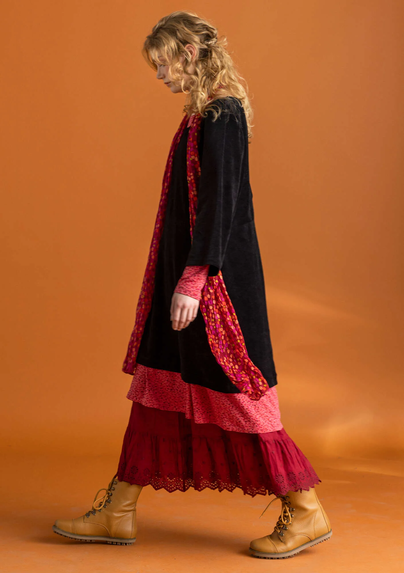- Relaxed style crafted from beautiful velour. Gently tailored bodice and more volume in the skirt. Three-quarter sleeves and concealed side pockets.