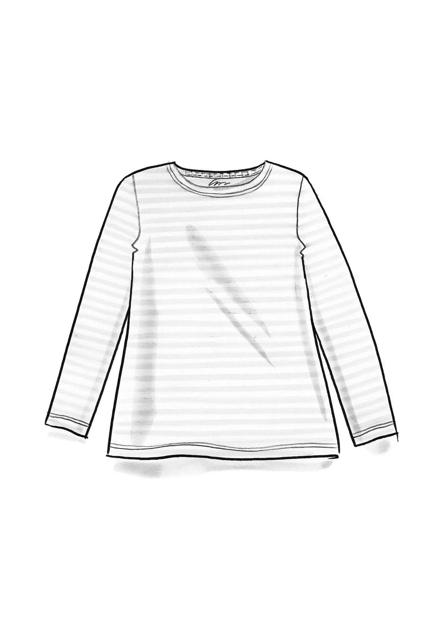 - A yarn-dyed stripe and a simple silhouette with full-length sleeves. A gentle boat neckline with double needle stitching around the edge.