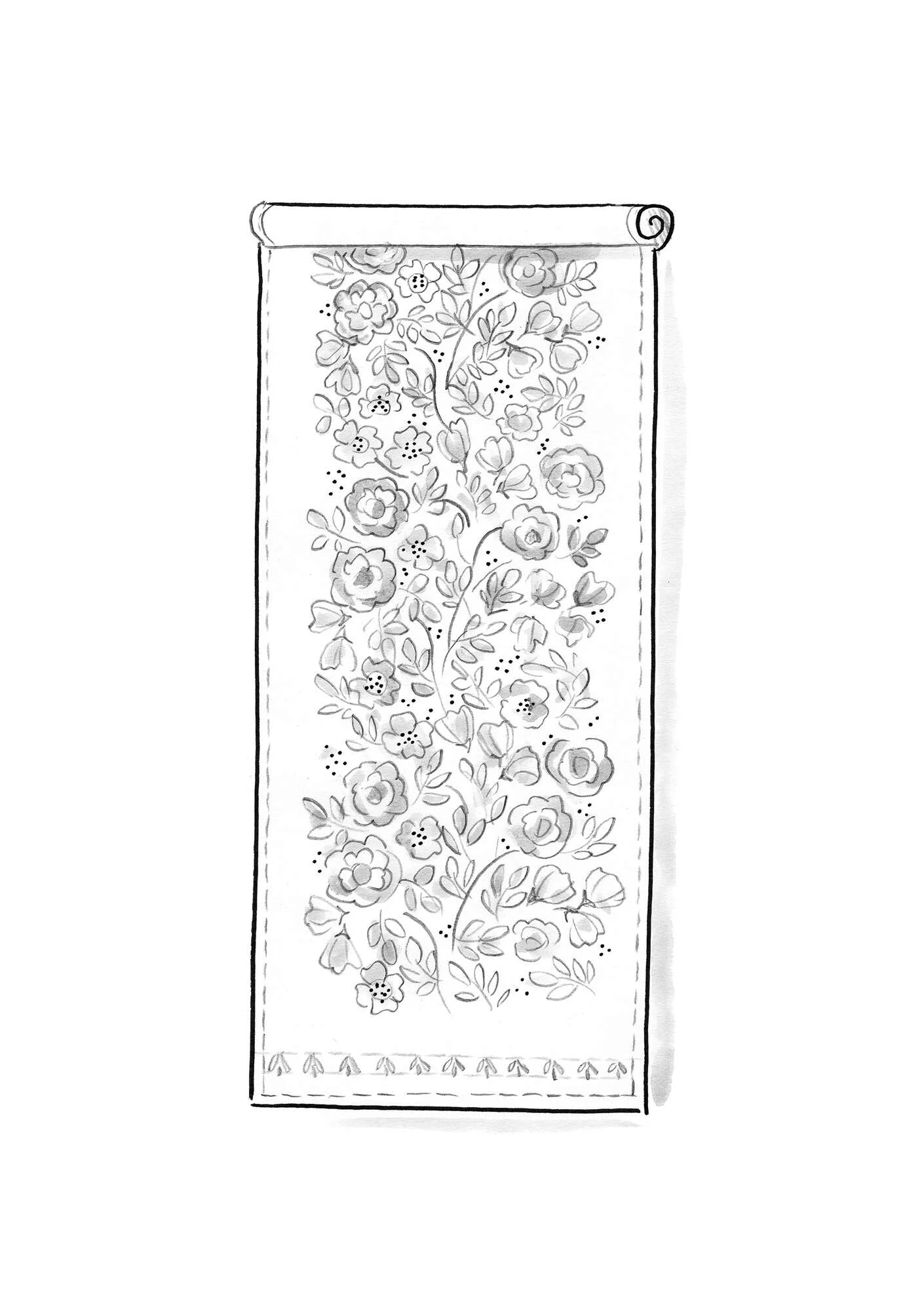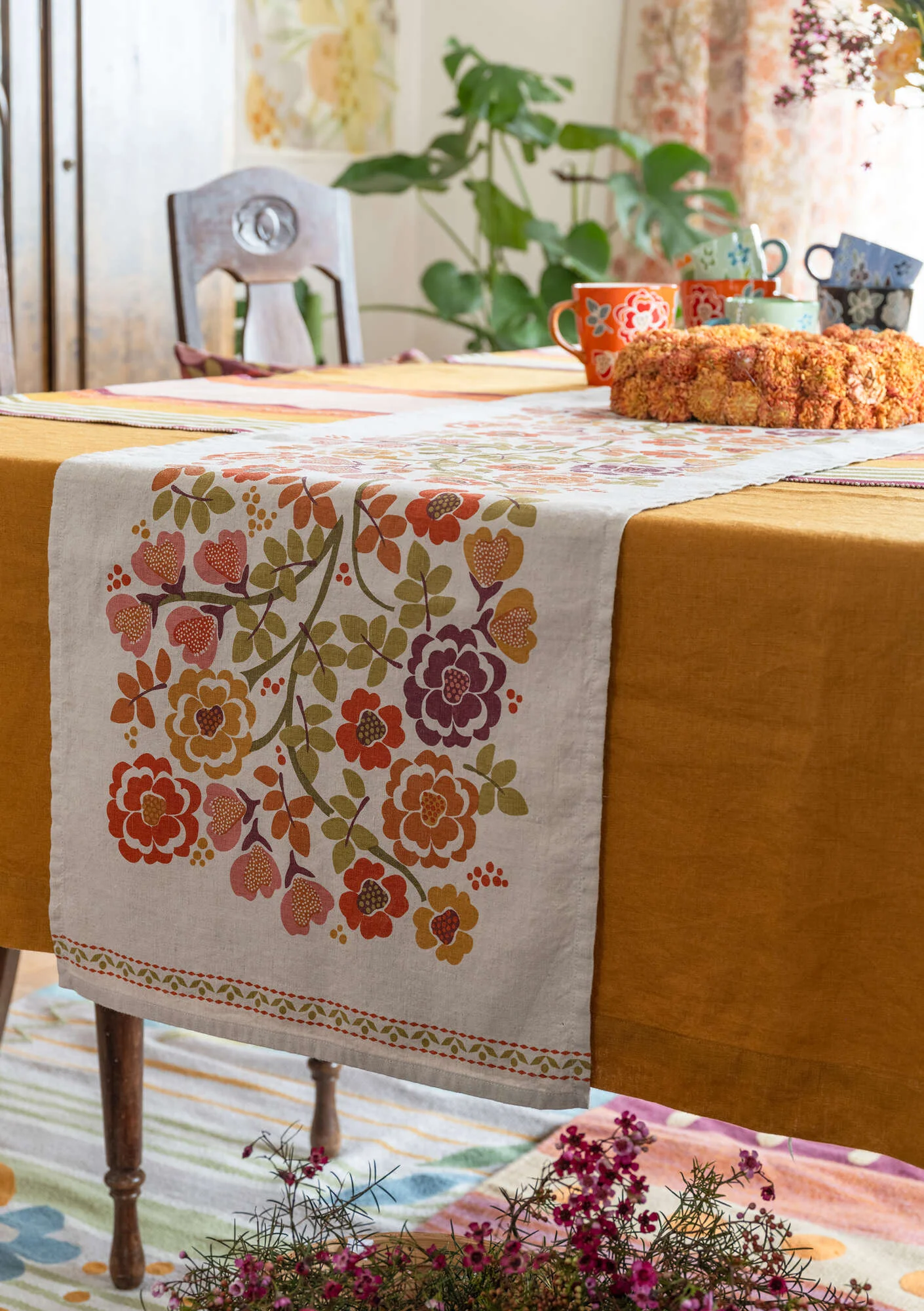 - Beautiful runner with u201cWild roseu201d placement print, decorative borders along the ends, screen-printed on a woven linen and organic cotton blend.