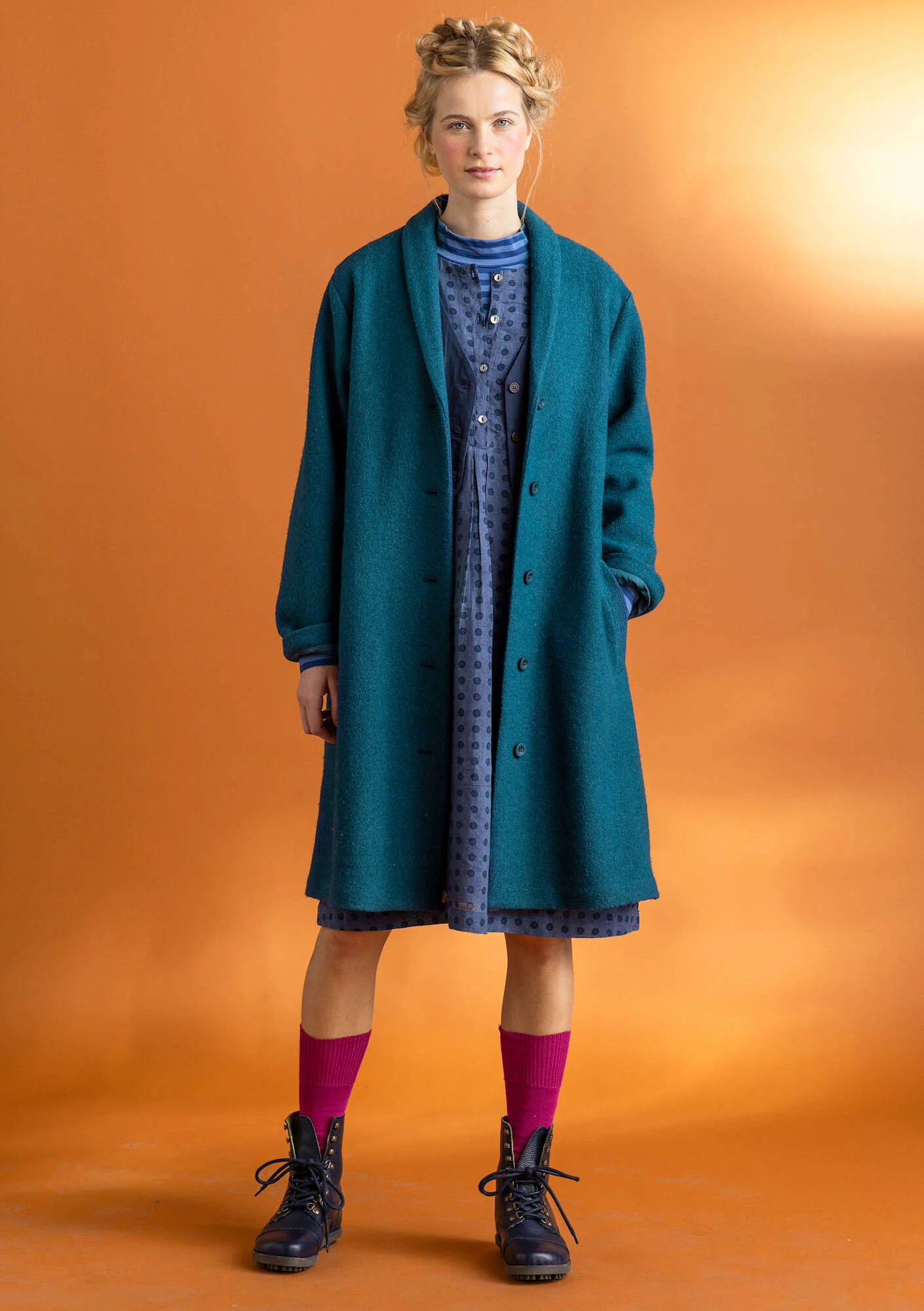 - This semi-lined coat with its neat shawl collar is made from an irregular bouclu00e9 yarn that results in a wonderfully textured surface. With practical pockets and a choice of solid colours.