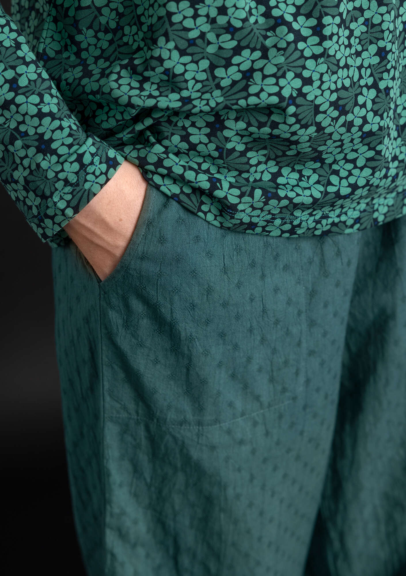 - Ankle-length trousers. The dobby weave pattern adds texture to the solid-colour fabric. The box pleats at the ankle create a softly puffed look. Side pockets and a comfortable elasticated waistband.