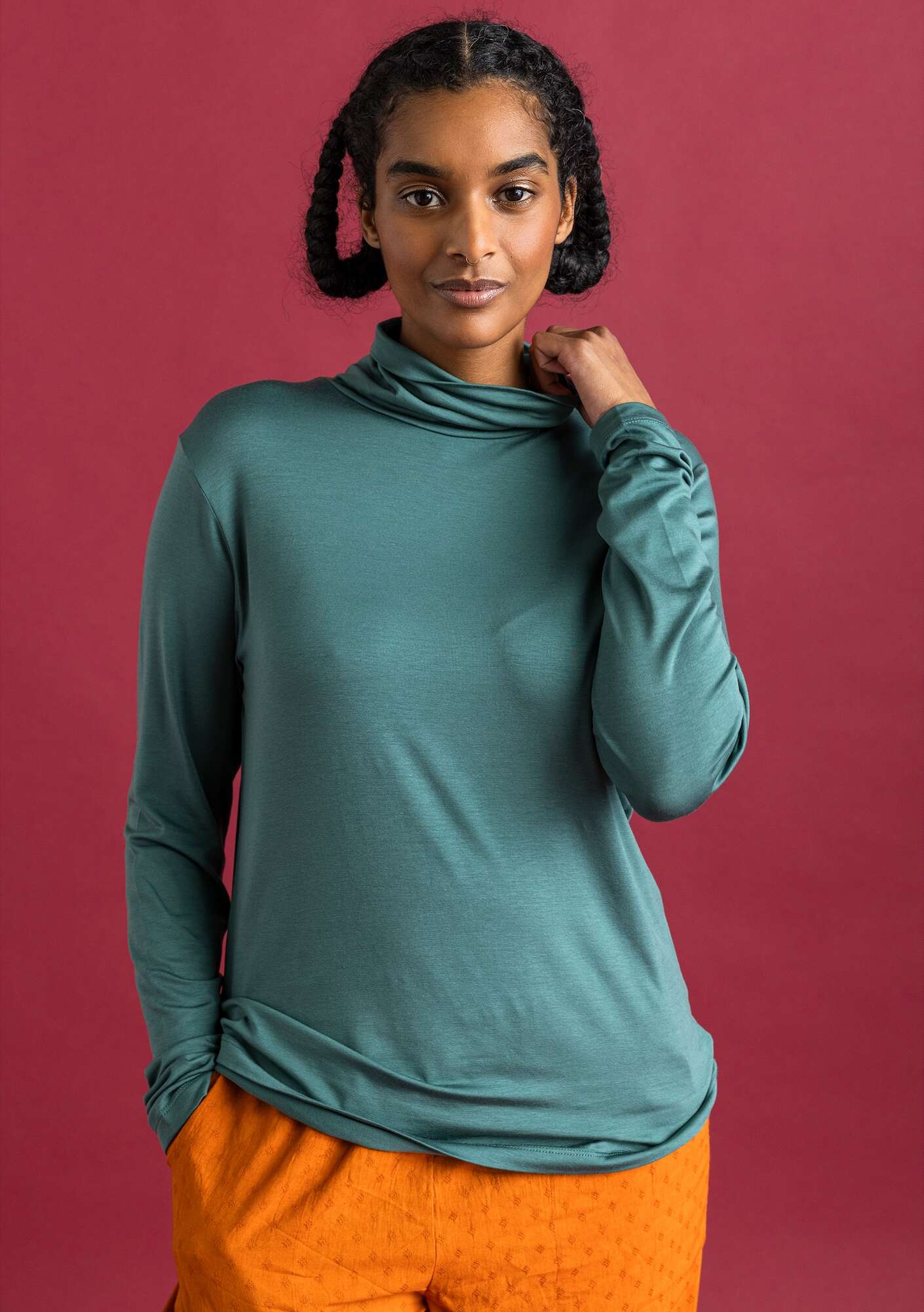 Our forever favourite boasts a soft and comfortable design. It has full-length sleeves and the neck can be worn doubled over. Crafted from an ultra-soft and supple fabric.