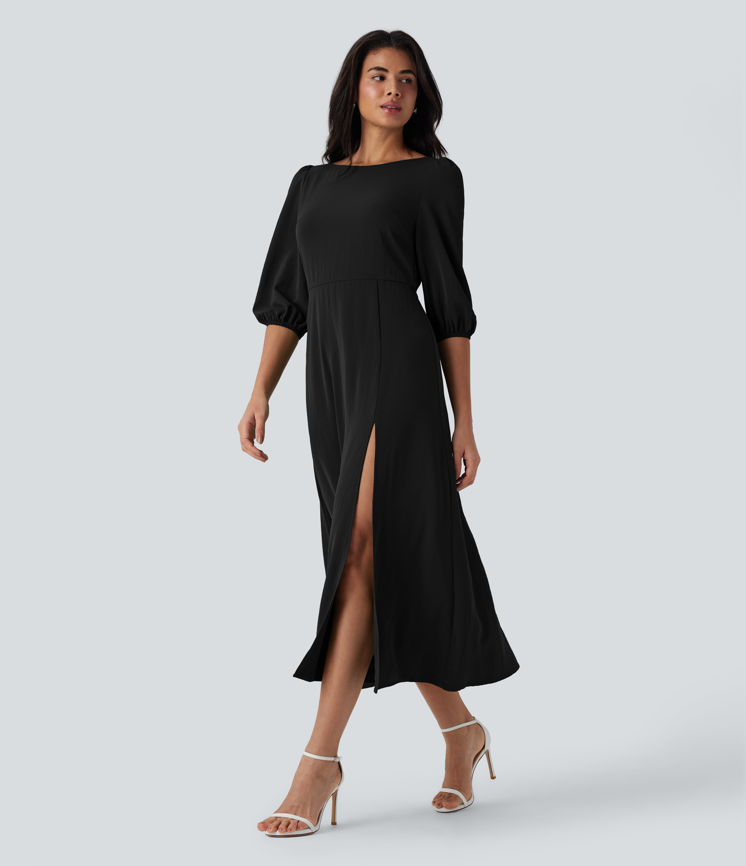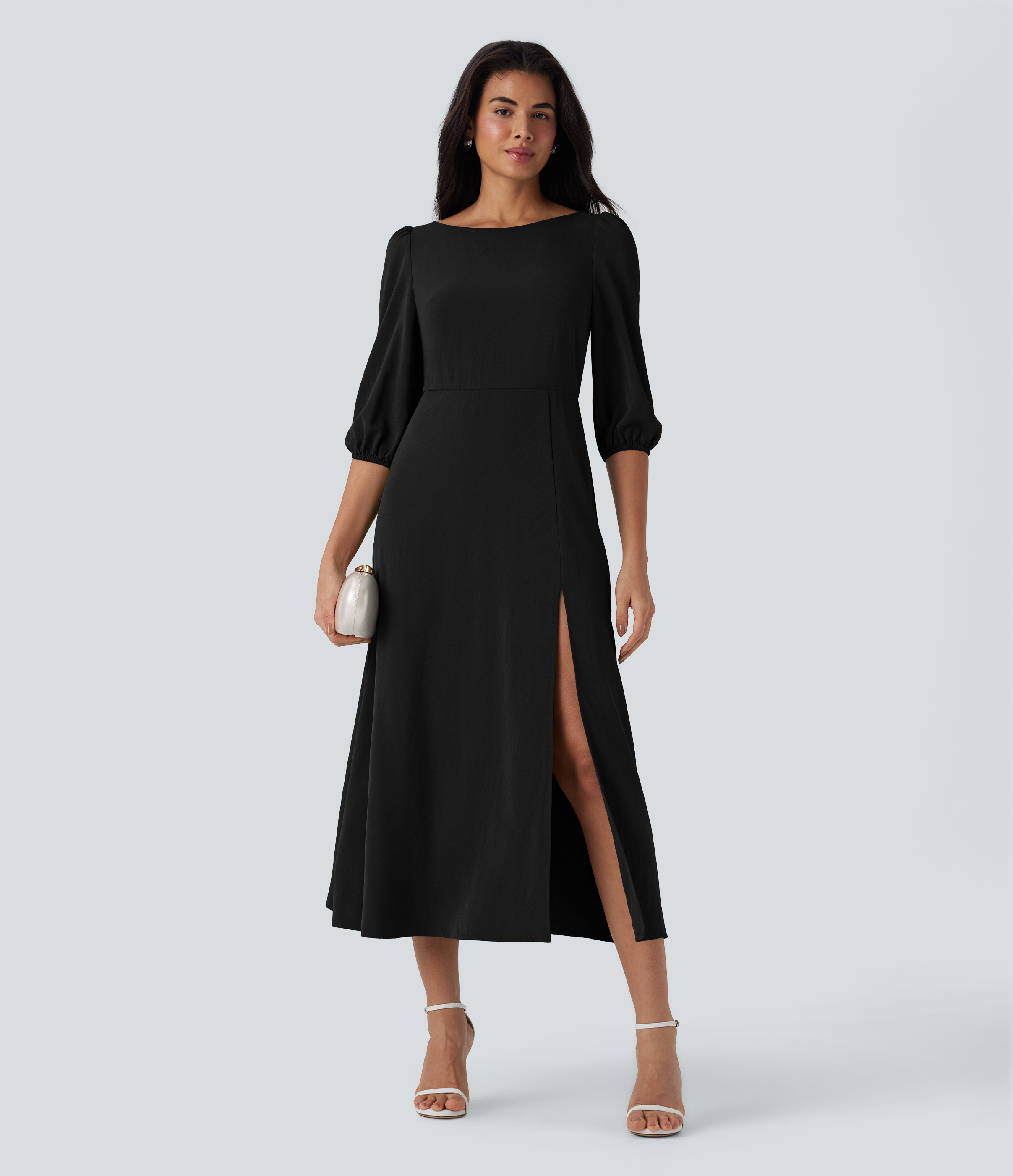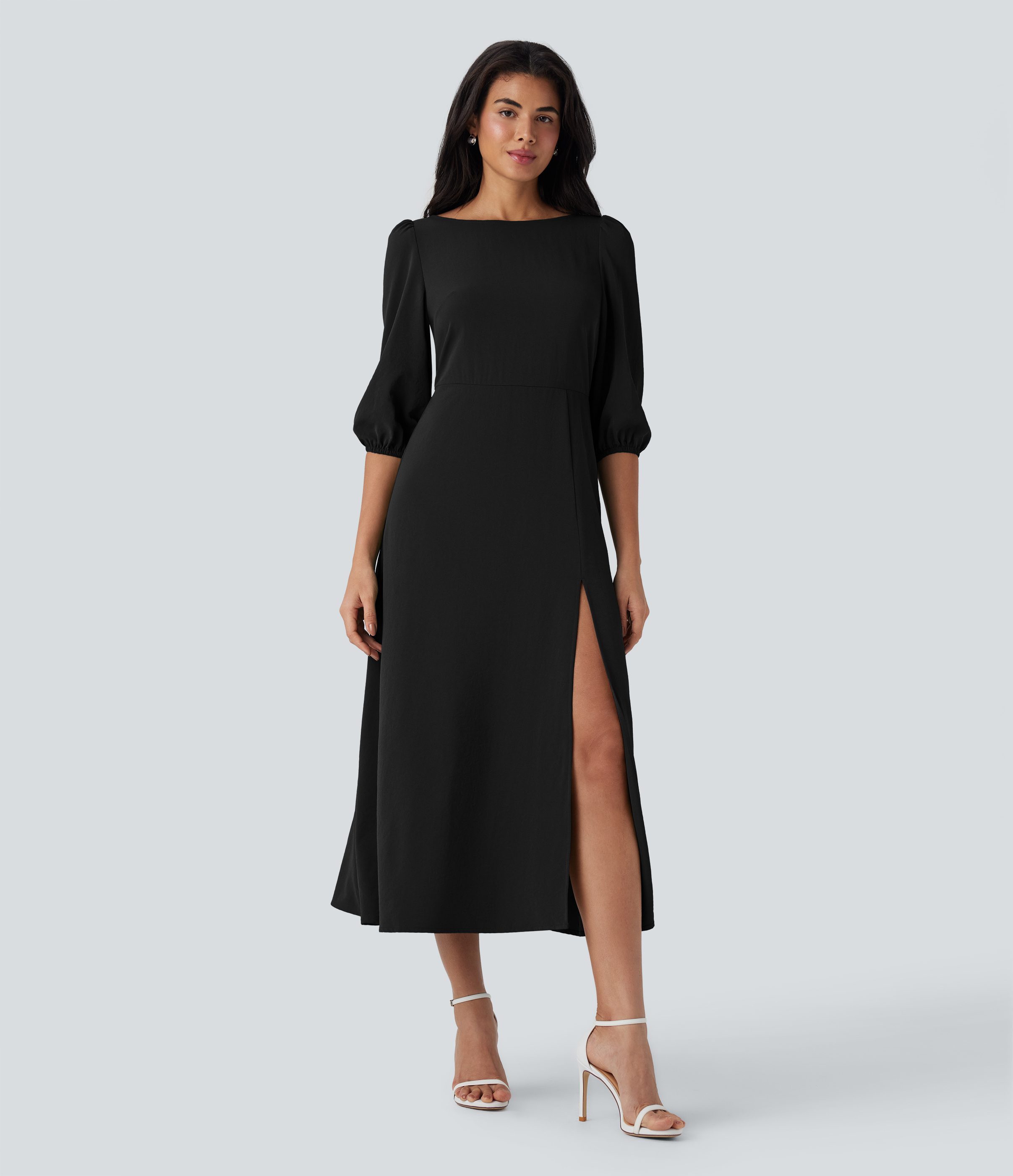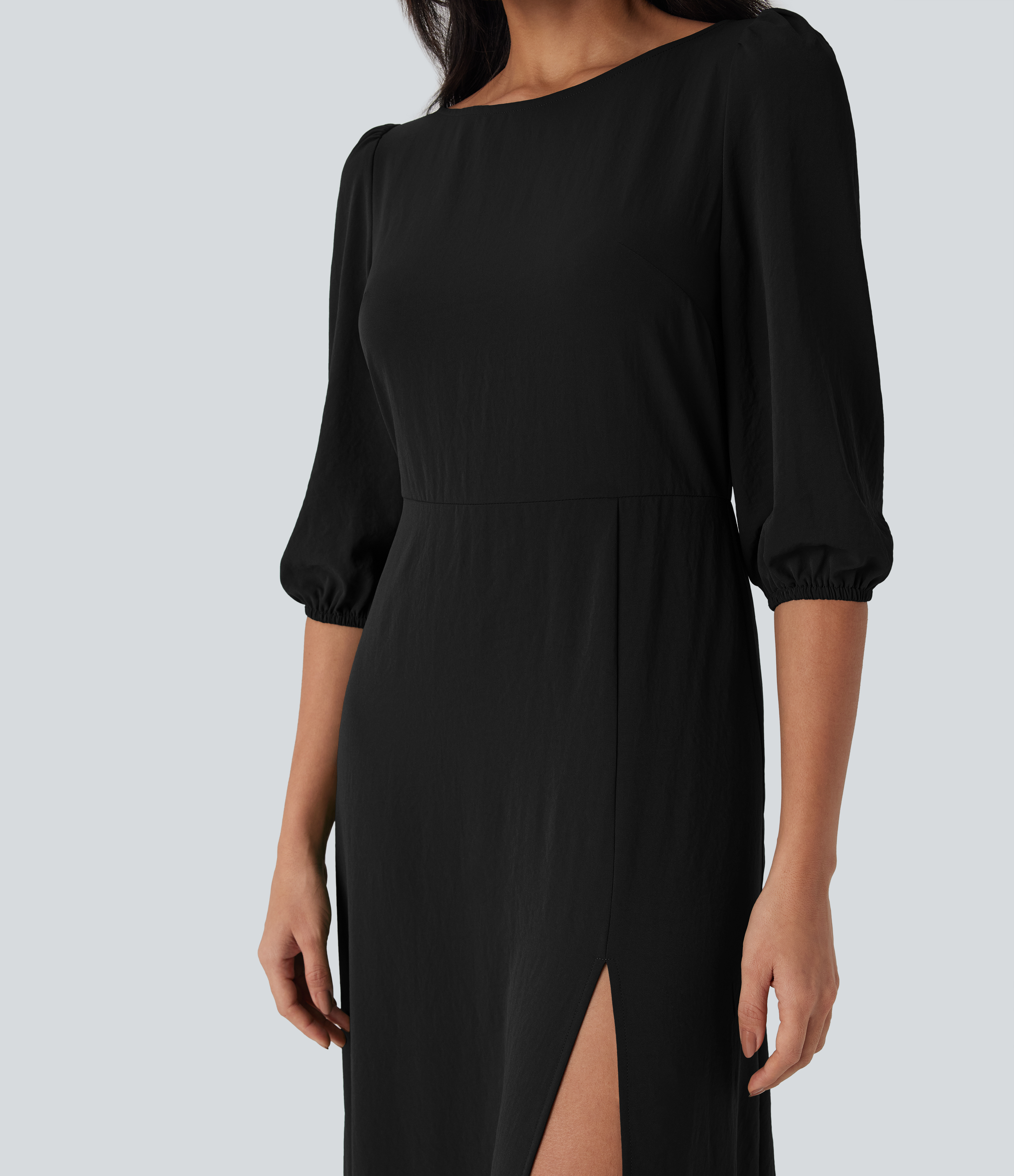 - The slit gives that perfect amount of leg show and an elongated silhouette.