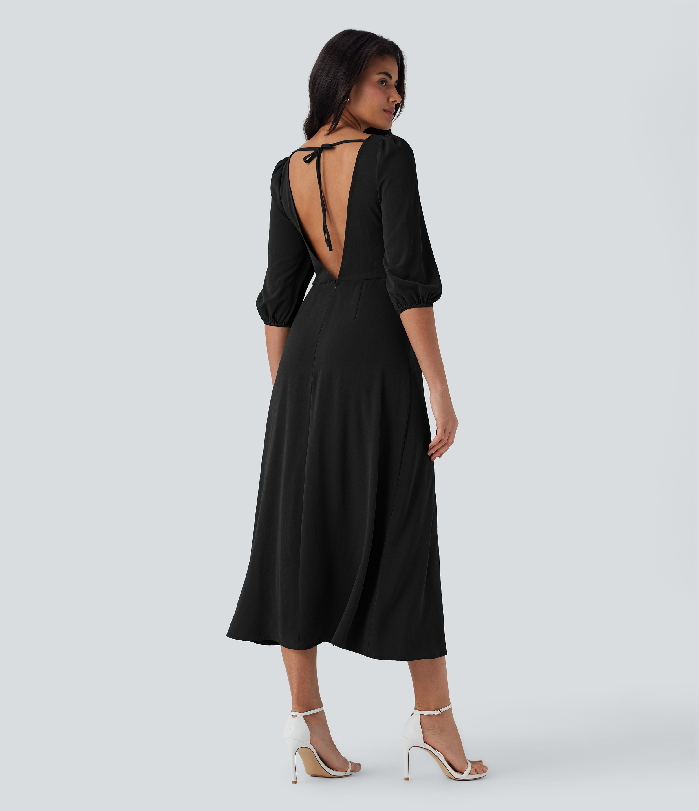 - A stylish backless design to show off some skin.