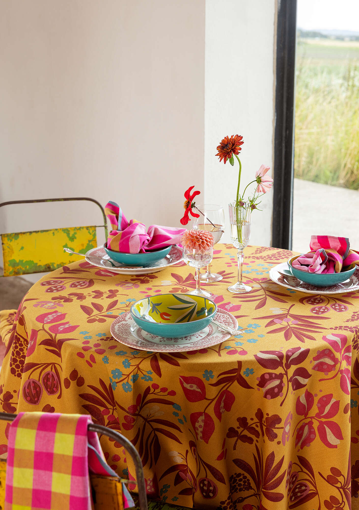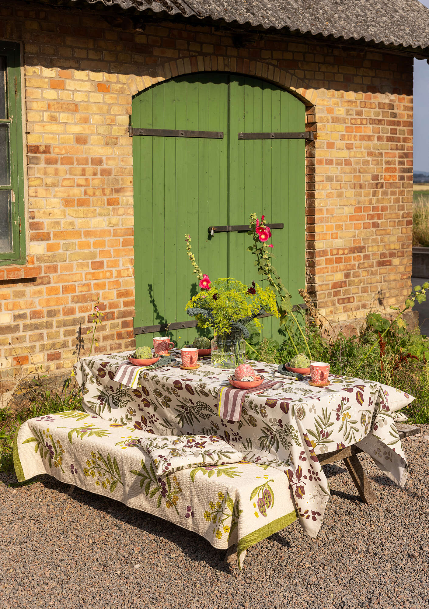 For everyday dining or celebrations, a tablecloth adds ambience, whatever the occasion. Inspired by Mediterranean olive trees, our sumptuous “Olives” design is rendered in rich, captivating colours.