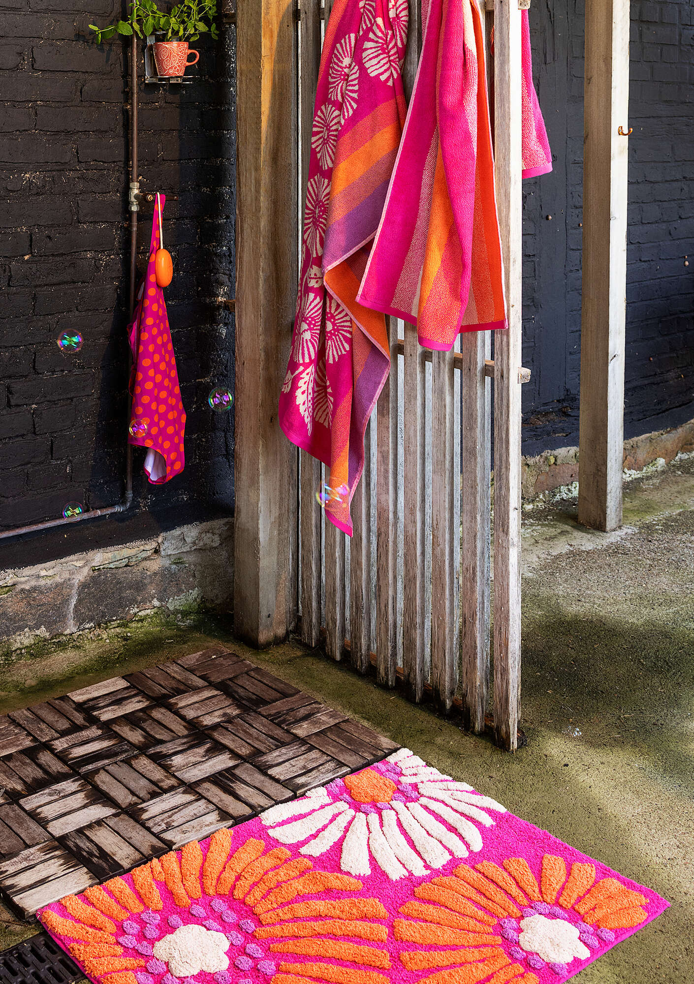 100% cotton. The cotton is certified organic. Delicate wash at 40°. Gentle spin. Do not tumble dry. With a practical, latex anti-slip backing. Made in Panipat, India.