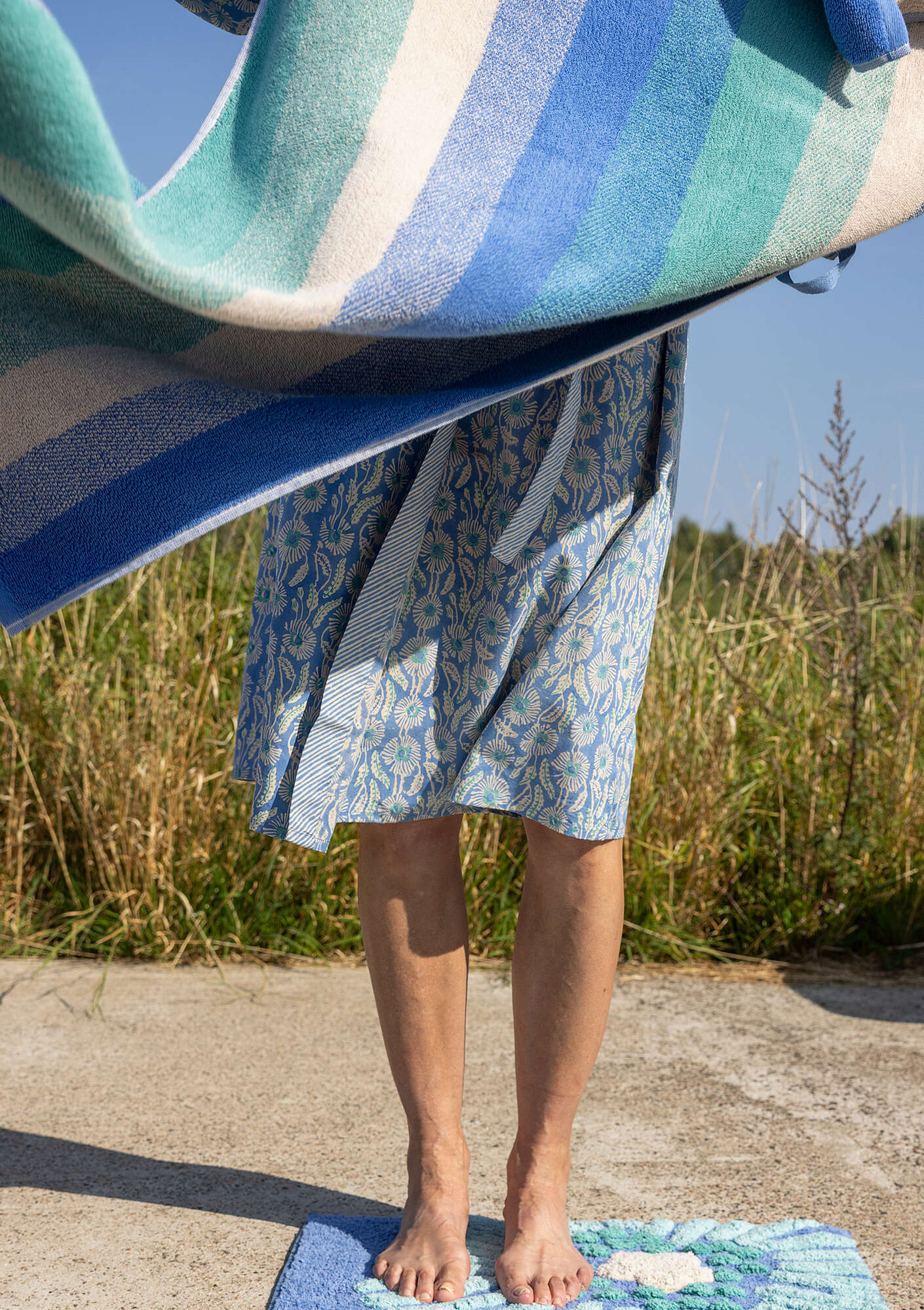 • Wrap yourself in this luxuriously soft bath towel with its soothing design of rolling waves. The edges and side loops are in a contrasting colour.