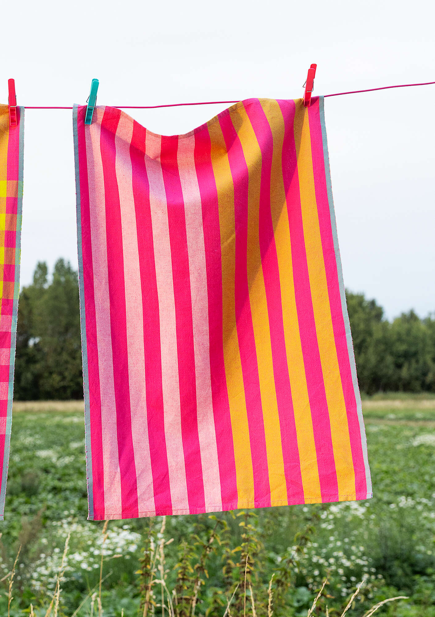 This simple and practical tea towel is made of organic cotton with yarn-dyed stripes and the colourful selvedge adds a decorative accent. Made for drying the dishes and other kitchen chores. Woven hanging loop.