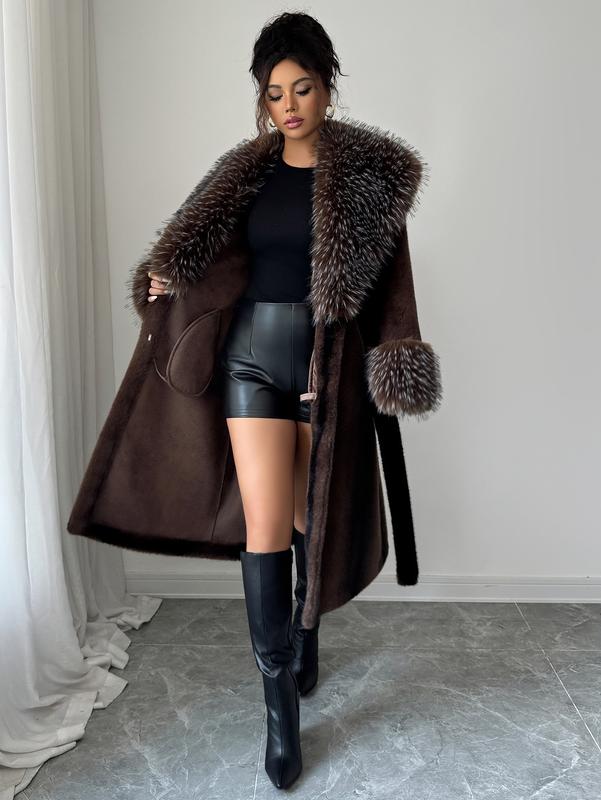 Winter Outerwear: Ideal for cold weather.📌 Perfect for Winter 📌This coat is a must-have for winter. It combines elegance with functionality, making it perfect for various winter outfits. The plush collar and cuffs add extra warmth, while the belted design ensures a stylish look. Stay warm and fashionable this winter with the ASANDY Women's Fur Coat.