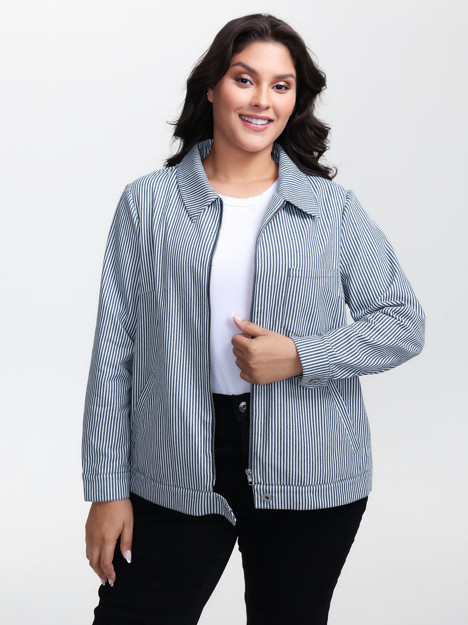 Denim Stripe Zipper-Front Jacket